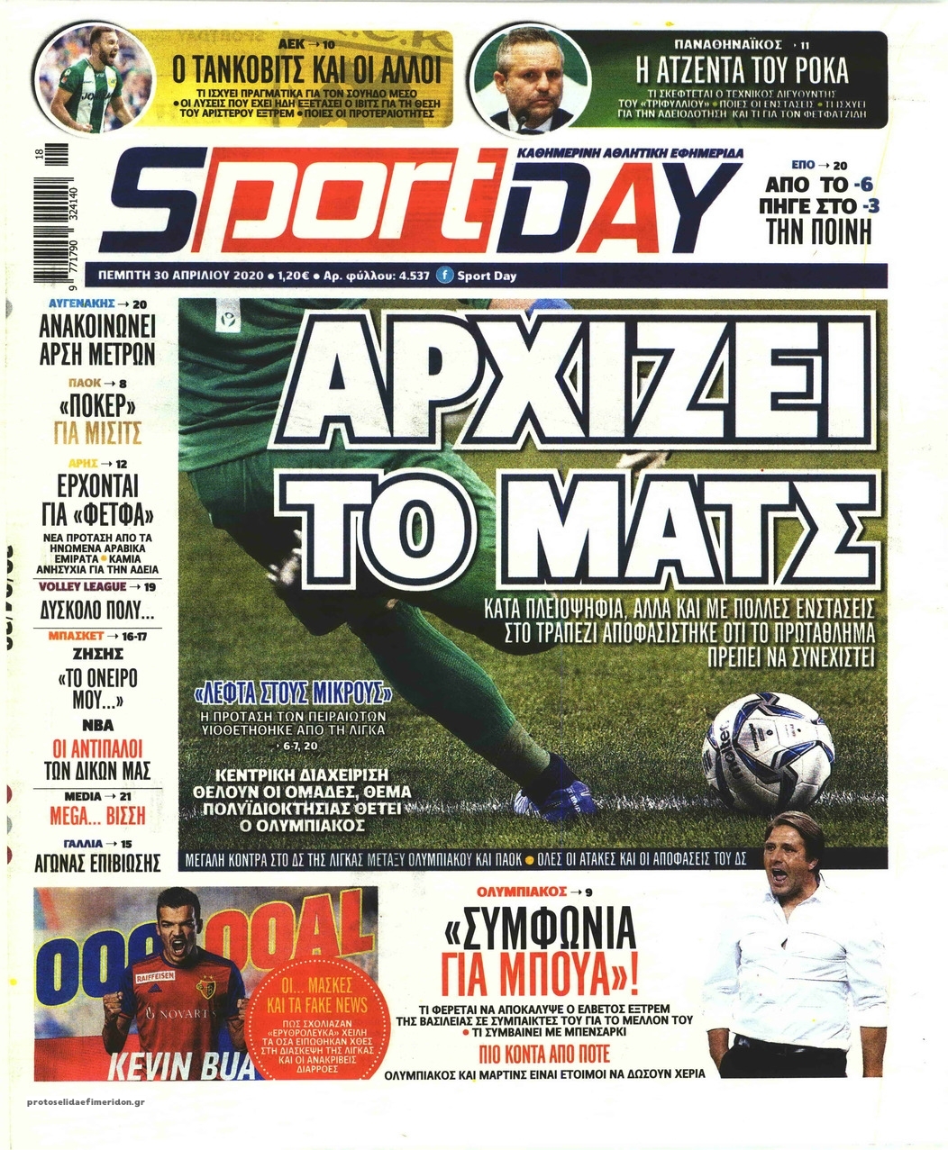 Διαβάστε όλα τα πρωτοσέλιδα των αθλητικών εφημερίδων της Πέμπτης 30 Απριλίου. Πλήρης ενημέρωση με μια γρήγορη ματιά!