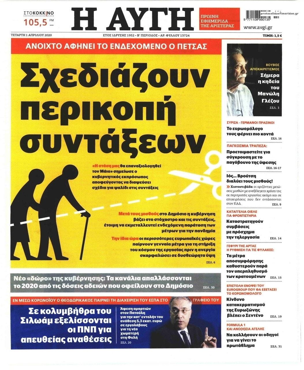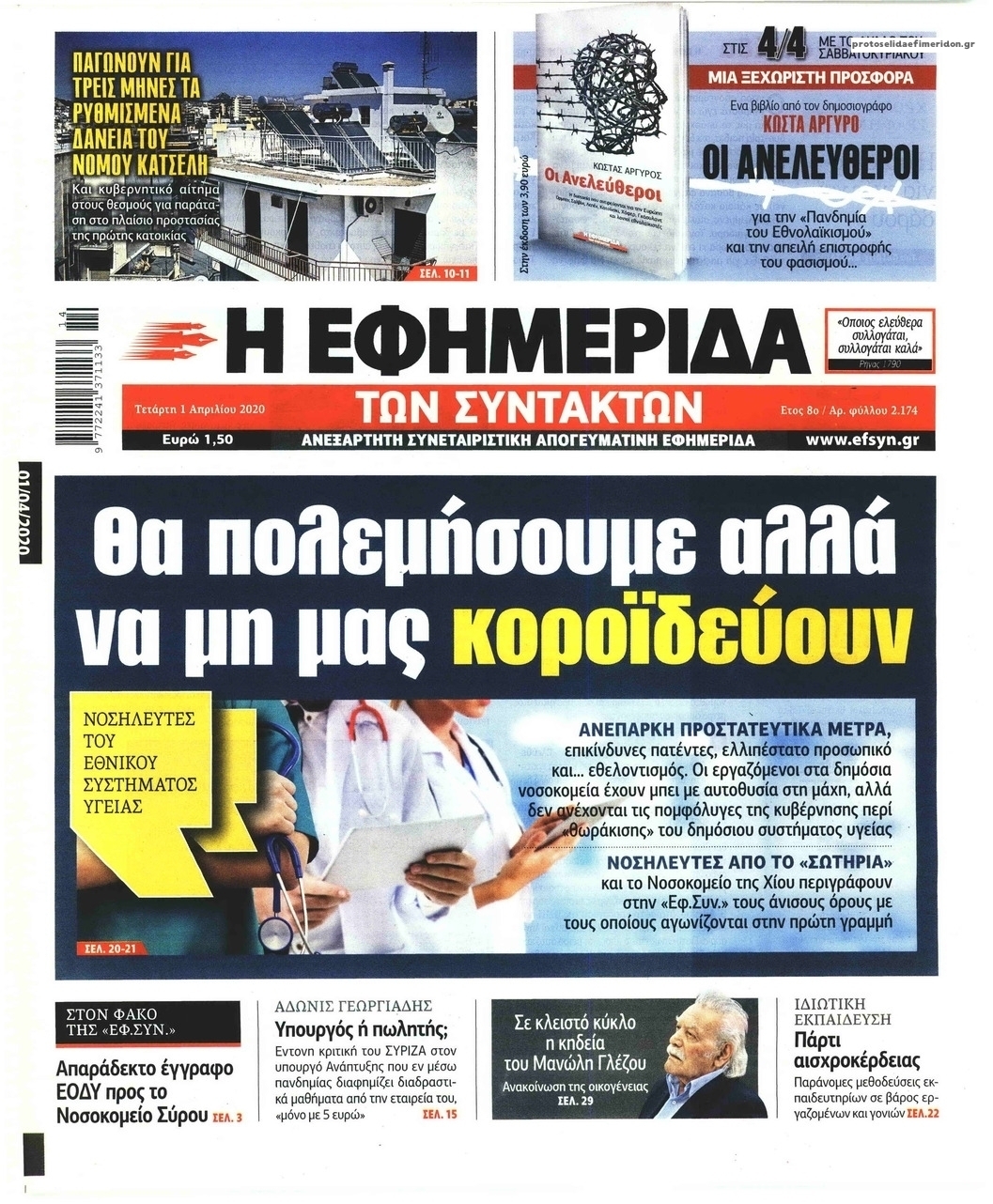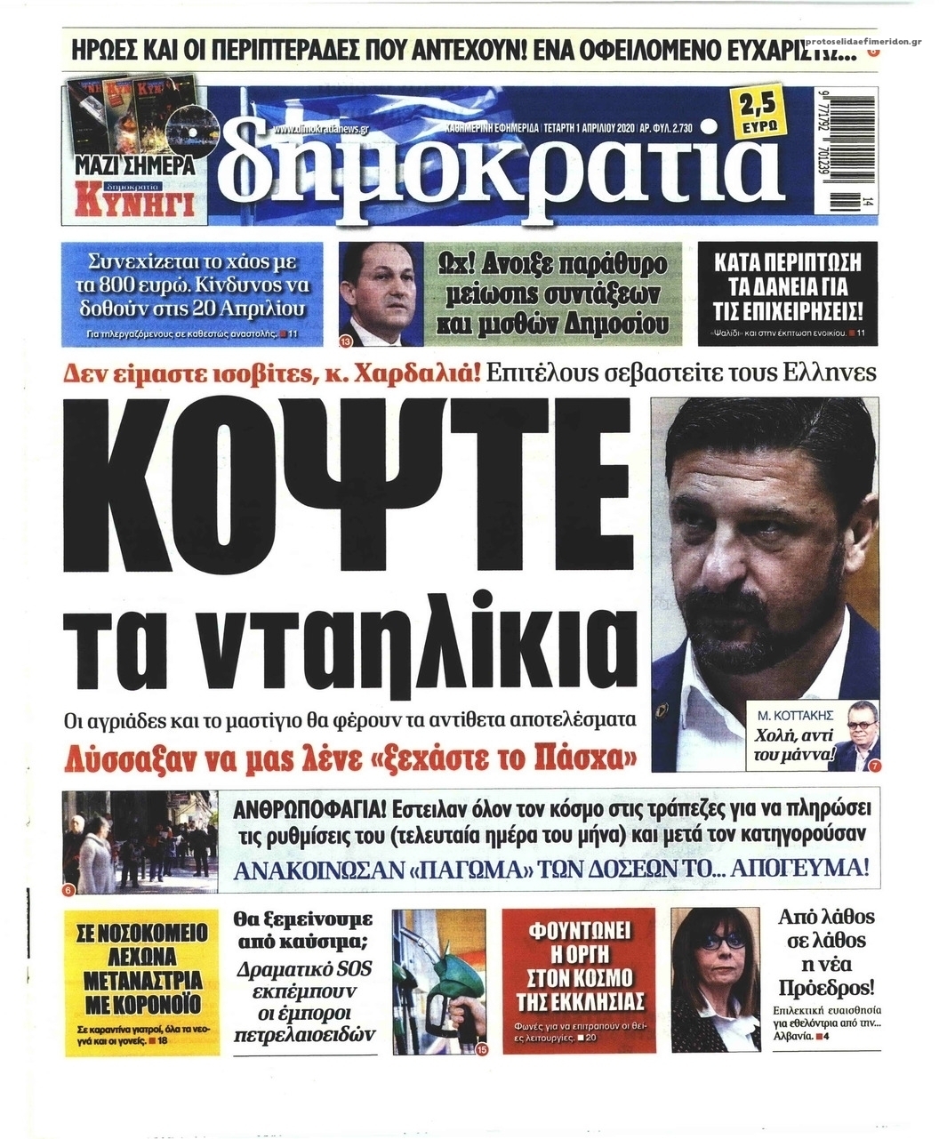 Διαβάστε όλα τα πρωτοσέλιδα των πολιτικών εφημερίδων της Τετάρτης 1 Απριλίου. Πλήρης ενημέρωση με μια γρήγορη ματιά!
