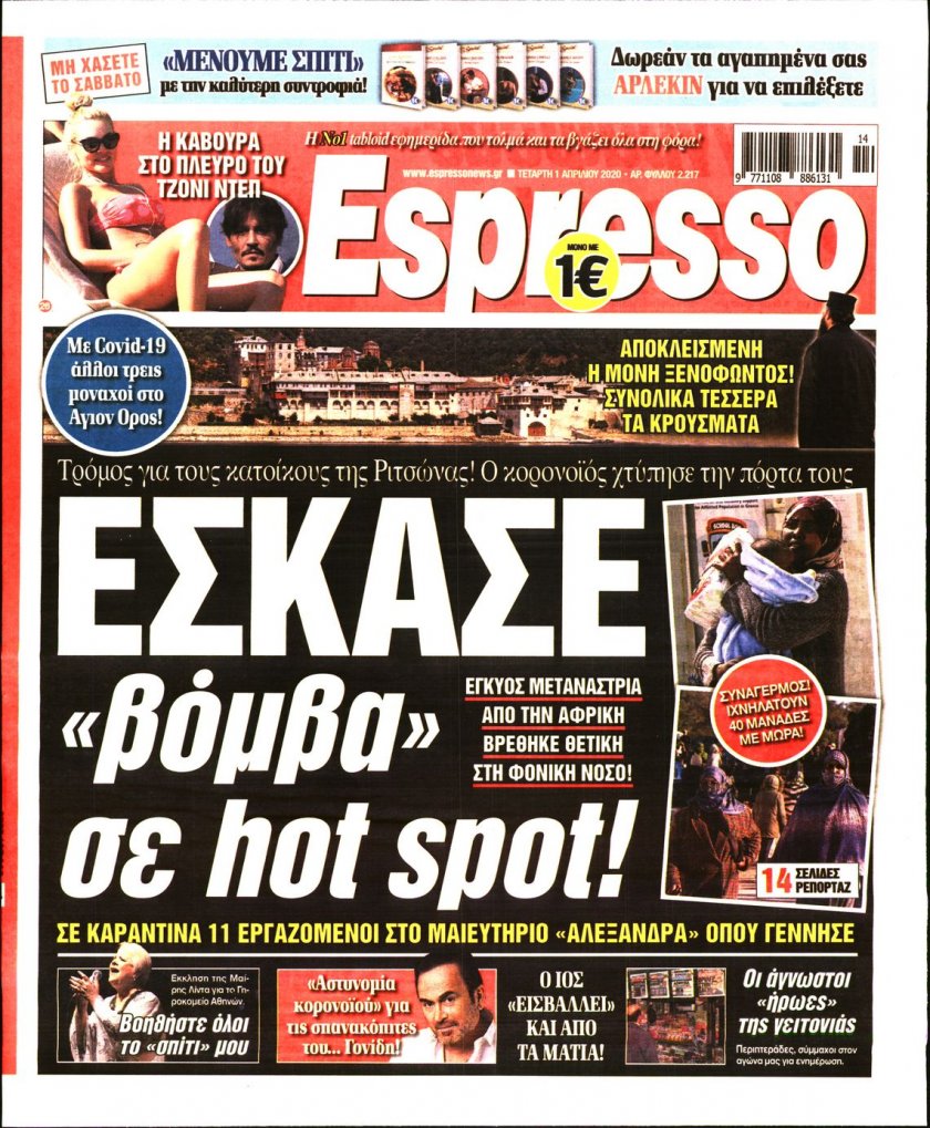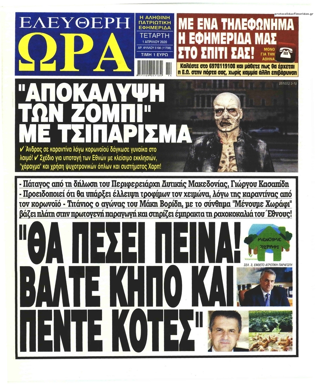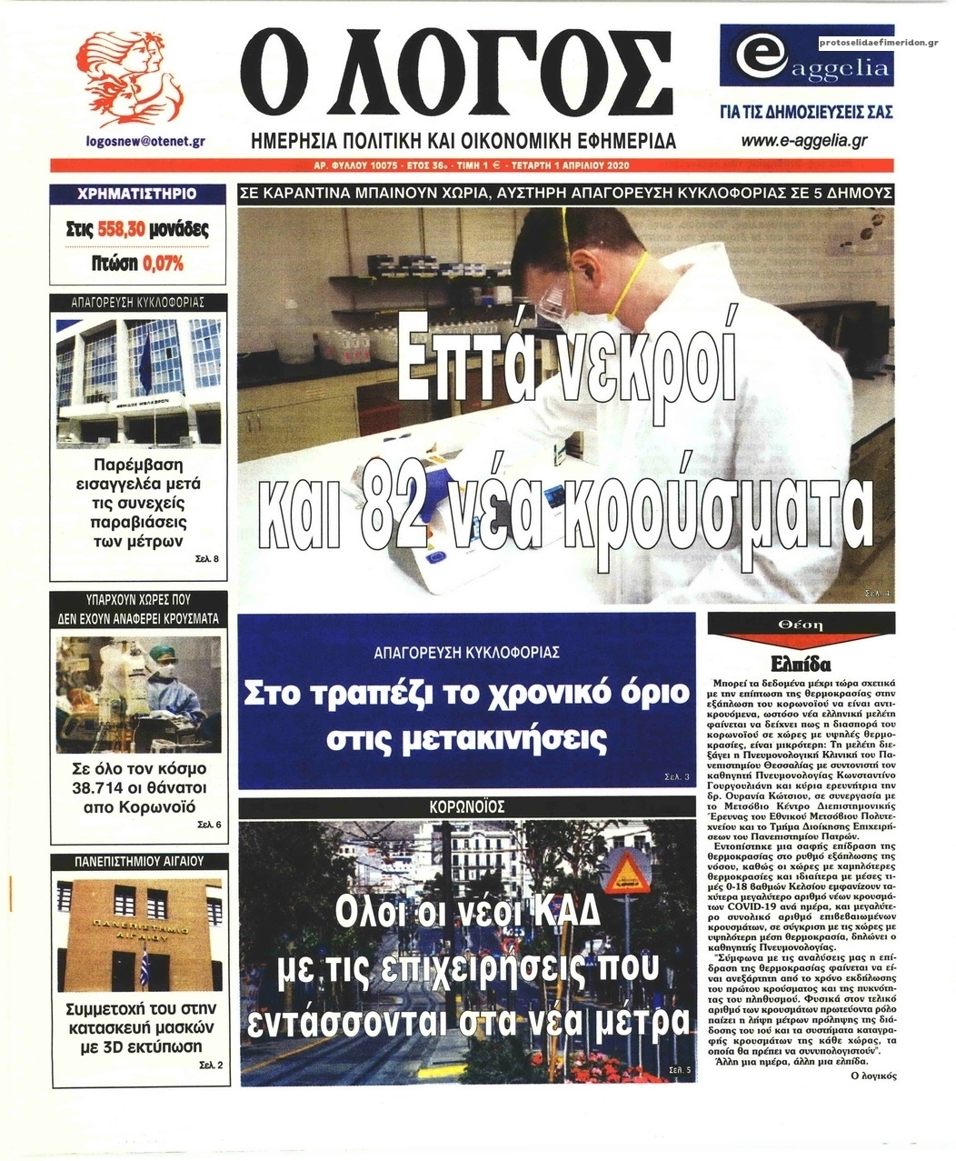 Διαβάστε όλα τα πρωτοσέλιδα των πολιτικών εφημερίδων της Τετάρτης 1 Απριλίου. Πλήρης ενημέρωση με μια γρήγορη ματιά!