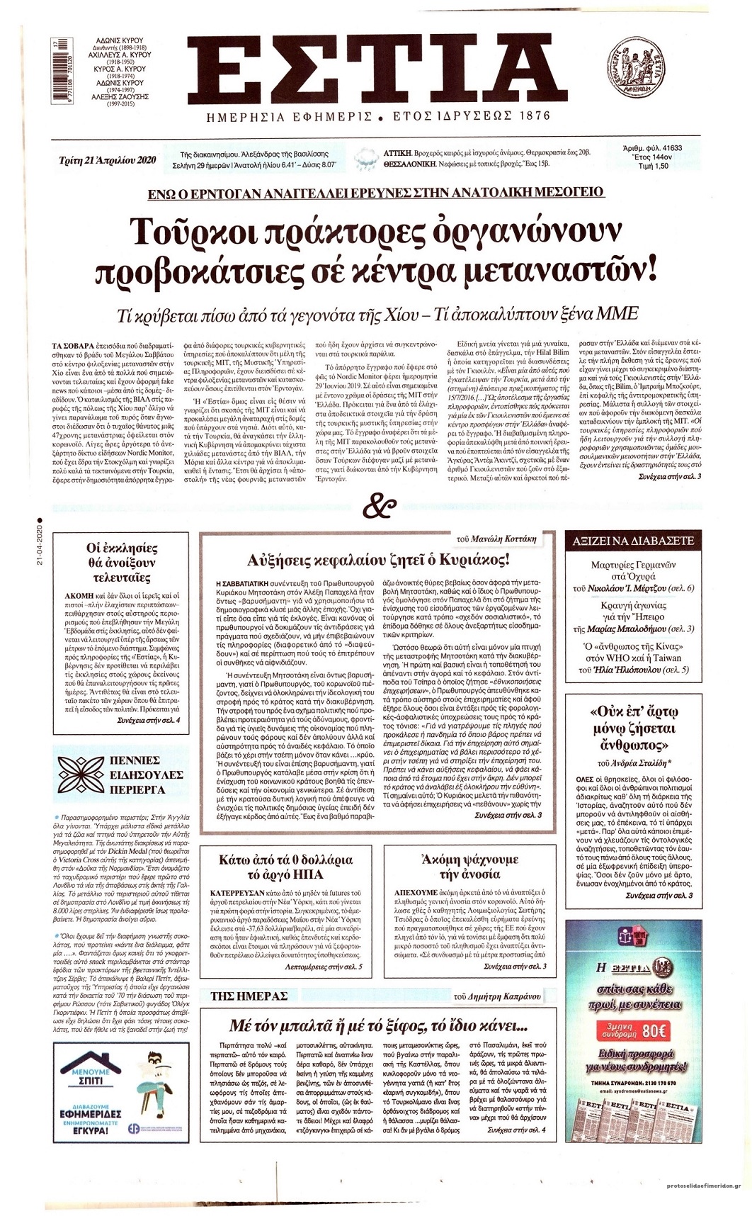 Διαβάστε όλα τα πρωτοσέλιδα των πολιτικών εφημερίδων της Τρίτης 21 Απριλίου. Πλήρης ενημέρωση με μια γρήγορη ματιά!