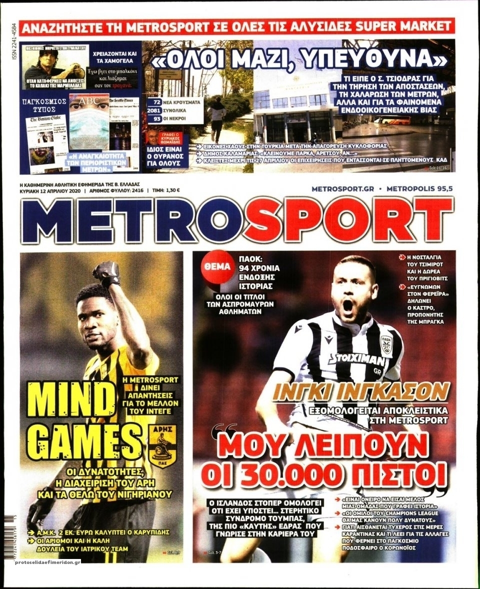 Διαβάστε όλα τα πρωτοσέλιδα των αθλητικών εφημερίδων της Κυριακής 12 Απριλίου. Πλήρης ενημέρωση με μια γρήγορη ματιά!