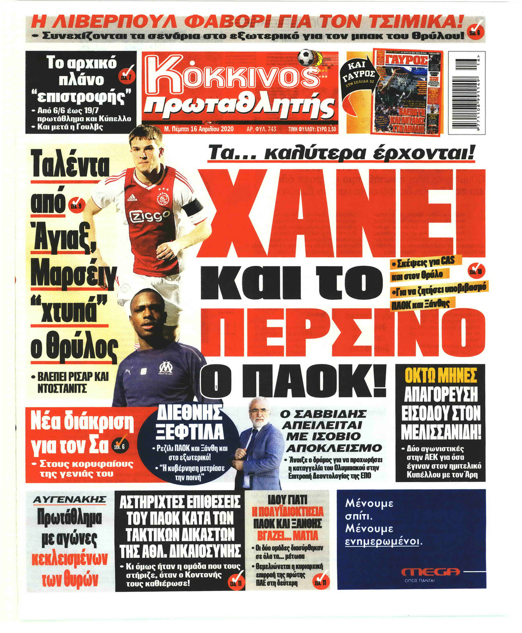 Διαβάστε όλα τα πρωτοσέλιδα των αθλητικών εφημερίδων της Πέμπτης 16 Απριλίου. Πλήρης ενημέρωση με μια γρήγορη ματιά!