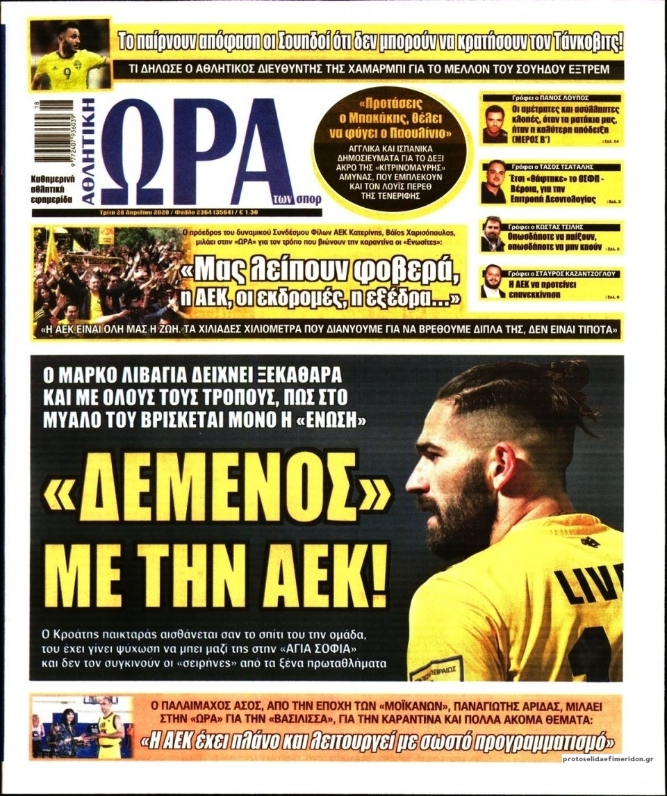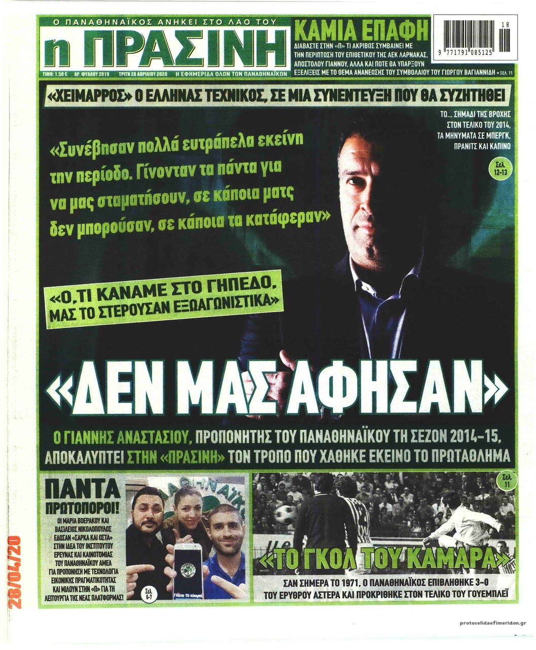 Διαβάστε όλα τα πρωτοσέλιδα των αθλητικών εφημερίδων της Τρίτης 28 Απριλίου. Πλήρης ενημέρωση με μια γρήγορη ματιά!
