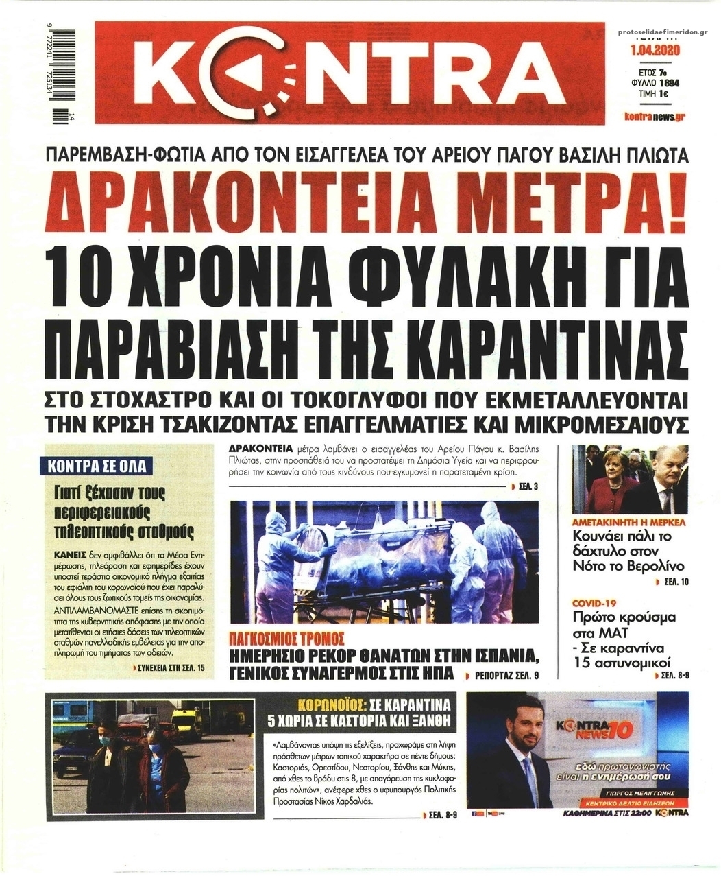 Διαβάστε όλα τα πρωτοσέλιδα των πολιτικών εφημερίδων της Τετάρτης 1 Απριλίου. Πλήρης ενημέρωση με μια γρήγορη ματιά!