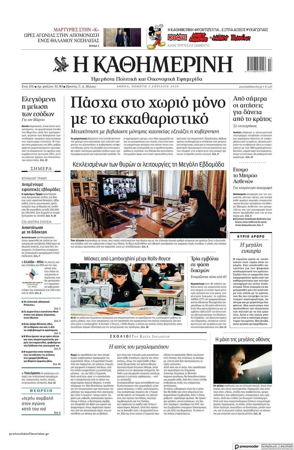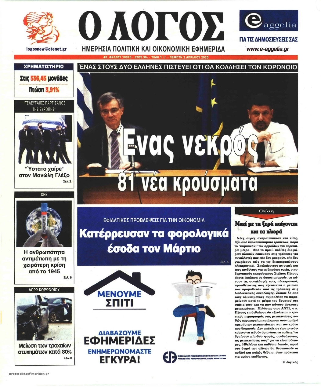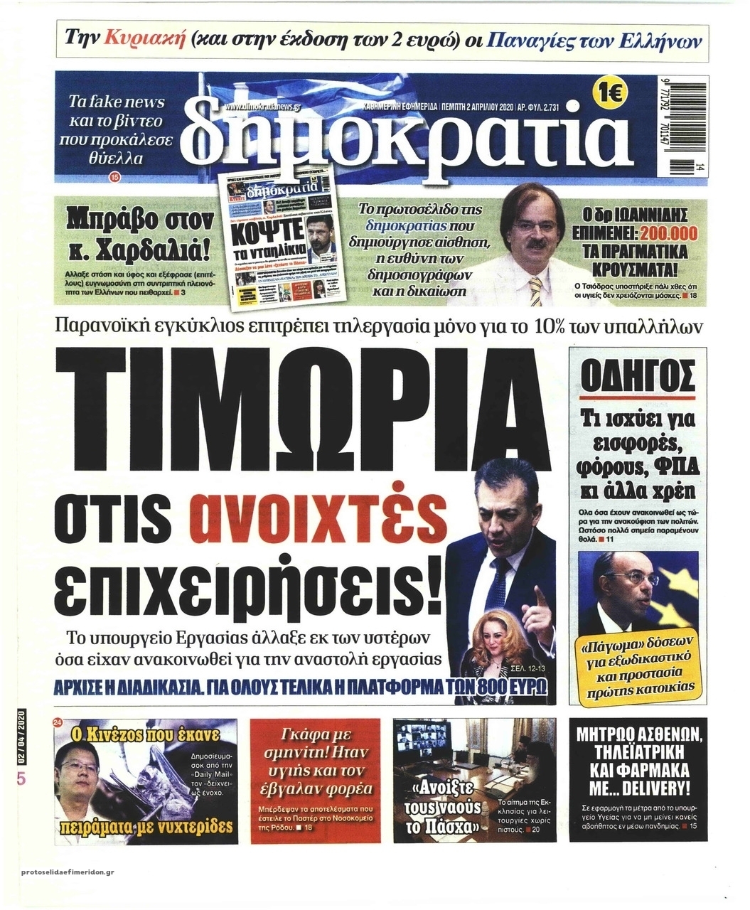 Διαβάστε όλα τα πρωτοσέλιδα των πολιτικών εφημερίδων της Πέμπτης 2 Απριλίου. Πλήρης ενημέρωση με μια γρήγορη ματιά!
