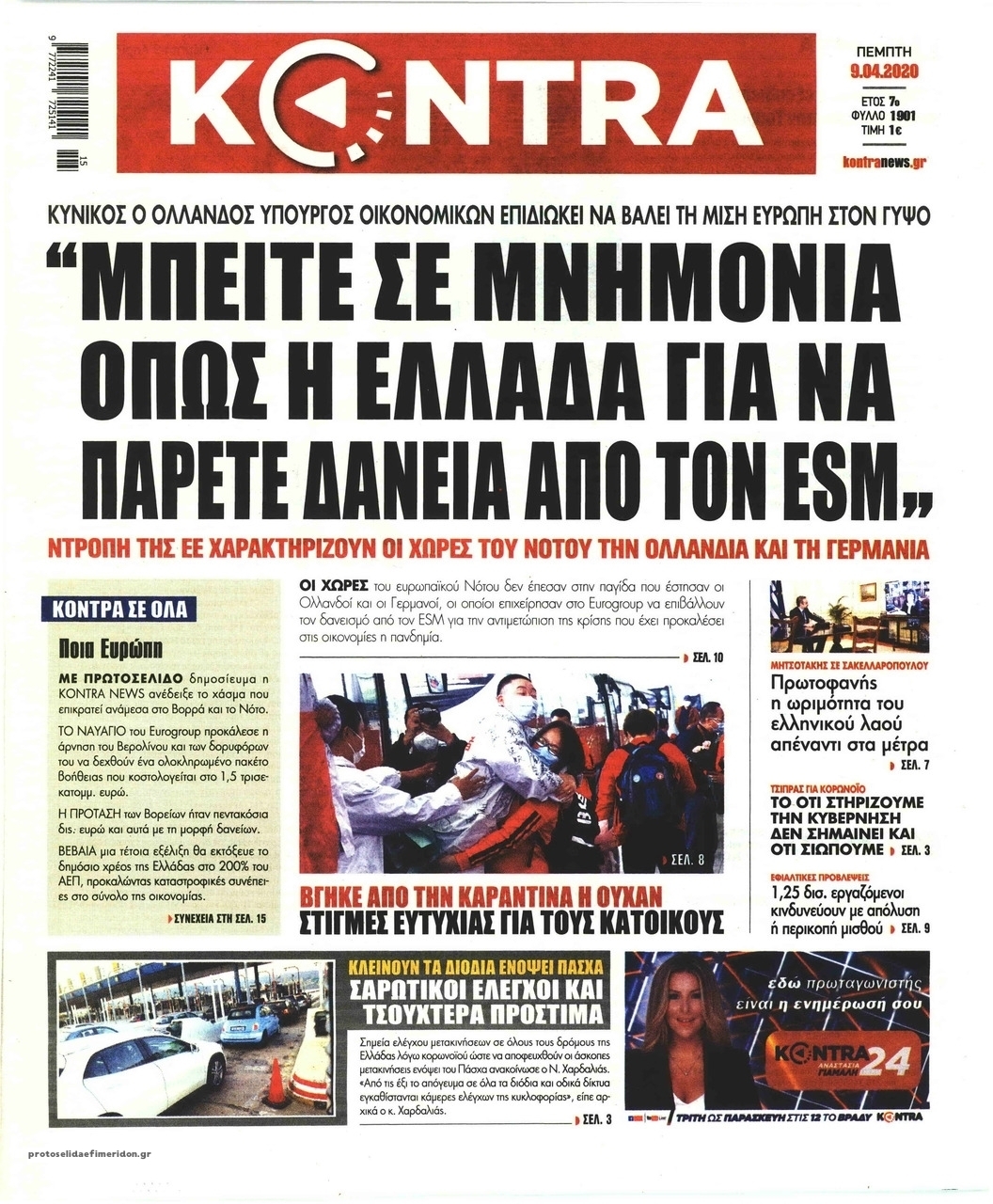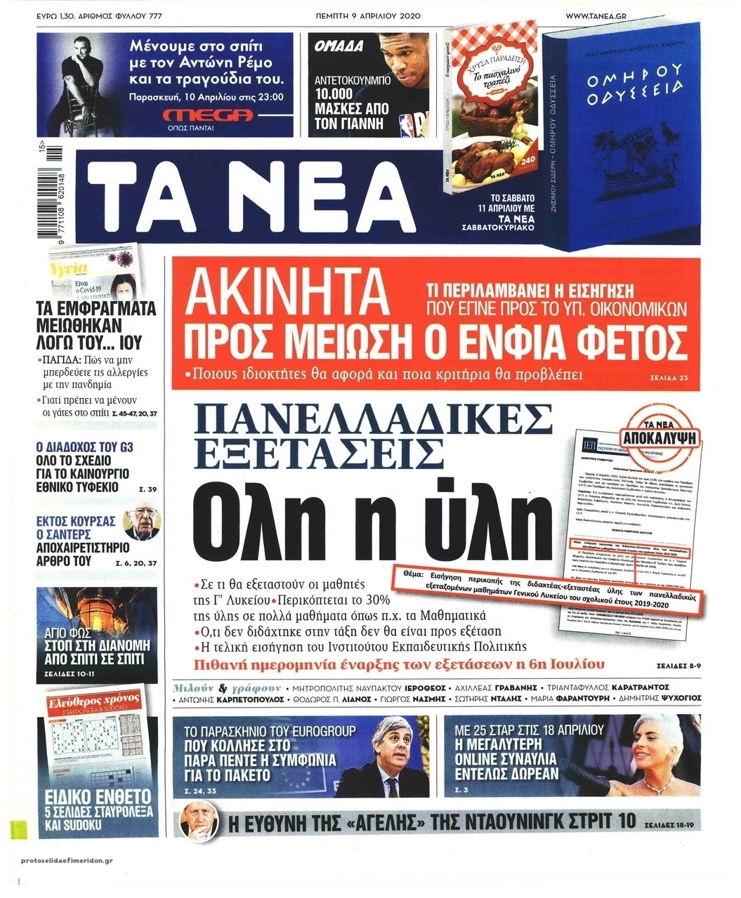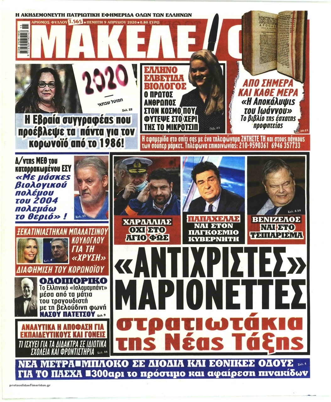 Διαβάστε όλα τα πρωτοσέλιδα των πολιτικών εφημερίδων της Πέμπτης 9 Απριλίου. Πλήρης ενημέρωση με μια γρήγορη ματιά!