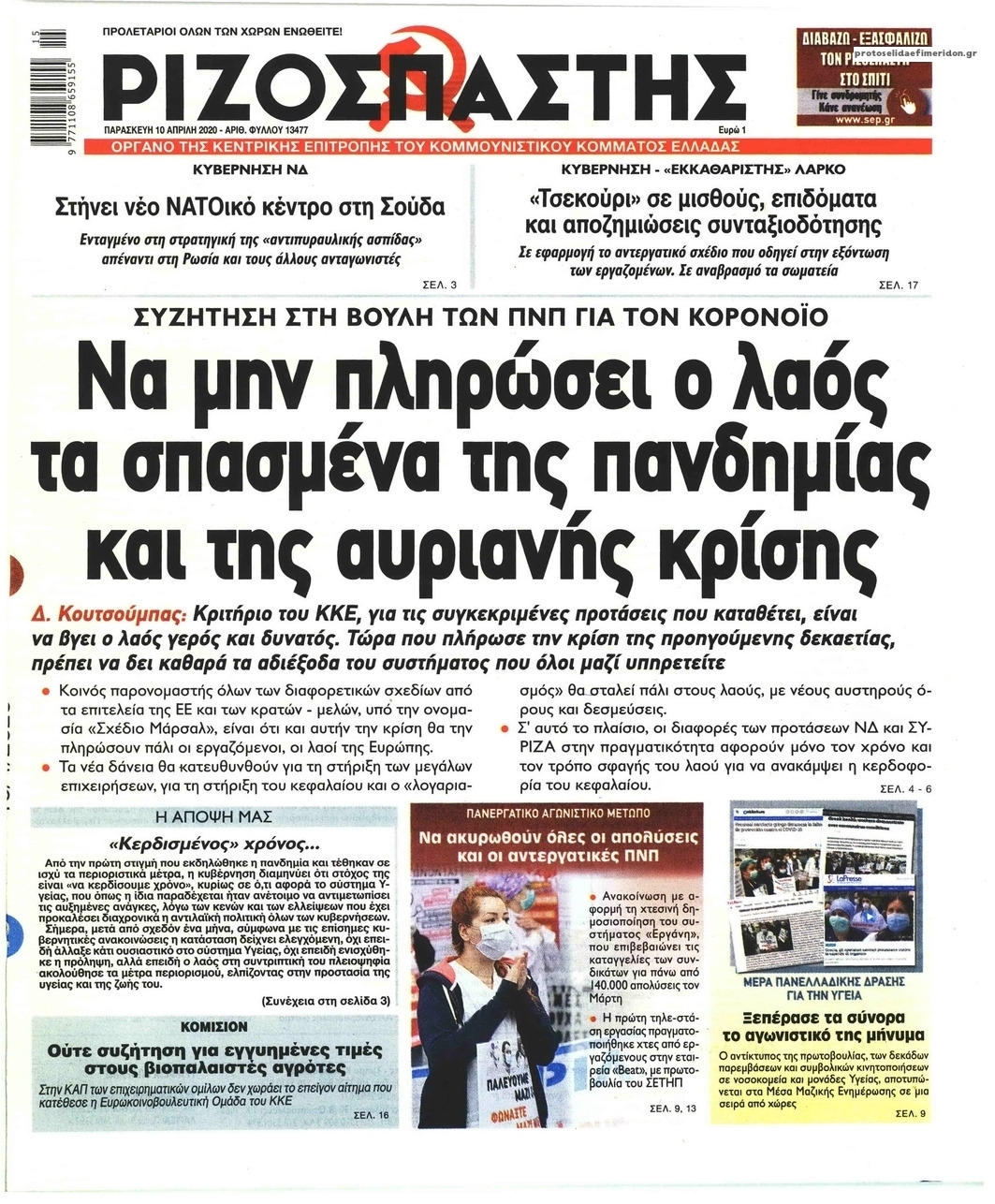 Διαβάστε όλα τα πρωτοσέλιδα των πολιτικών εφημερίδων της Παρασκευής 10 Απριλίου. Πλήρης ενημέρωση με μια γρήγορη ματιά!