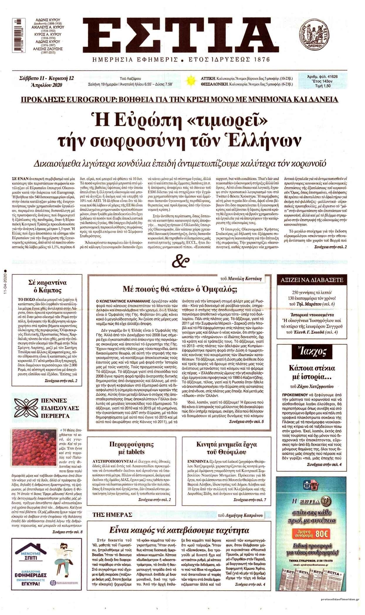 Διαβάστε όλα τα πρωτοσέλιδα των πολιτικών εφημερίδων του Σαββάτου 11 Απριλίου. Πλήρης ενημέρωση με μια γρήγορη ματιά!