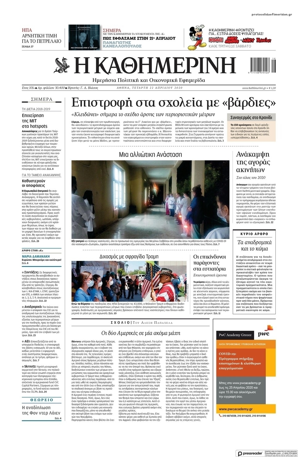 Διαβάστε όλα τα πρωτοσέλιδα των πολιτικών εφημερίδων της Τετάρτης 22 Απριλίου. Πλήρης ενημέρωση με μια γρήγορη ματιά!