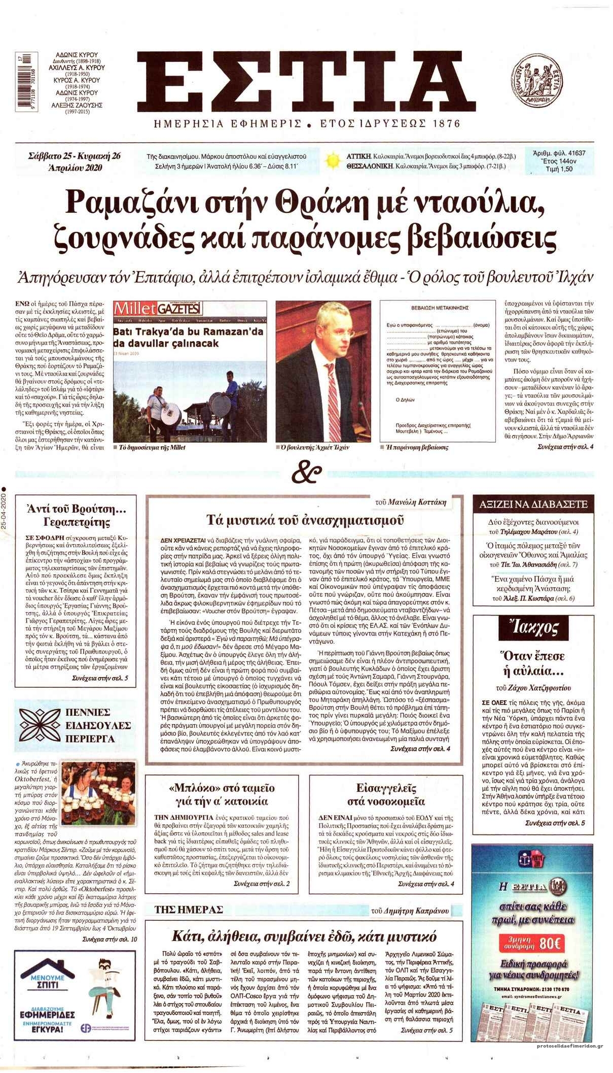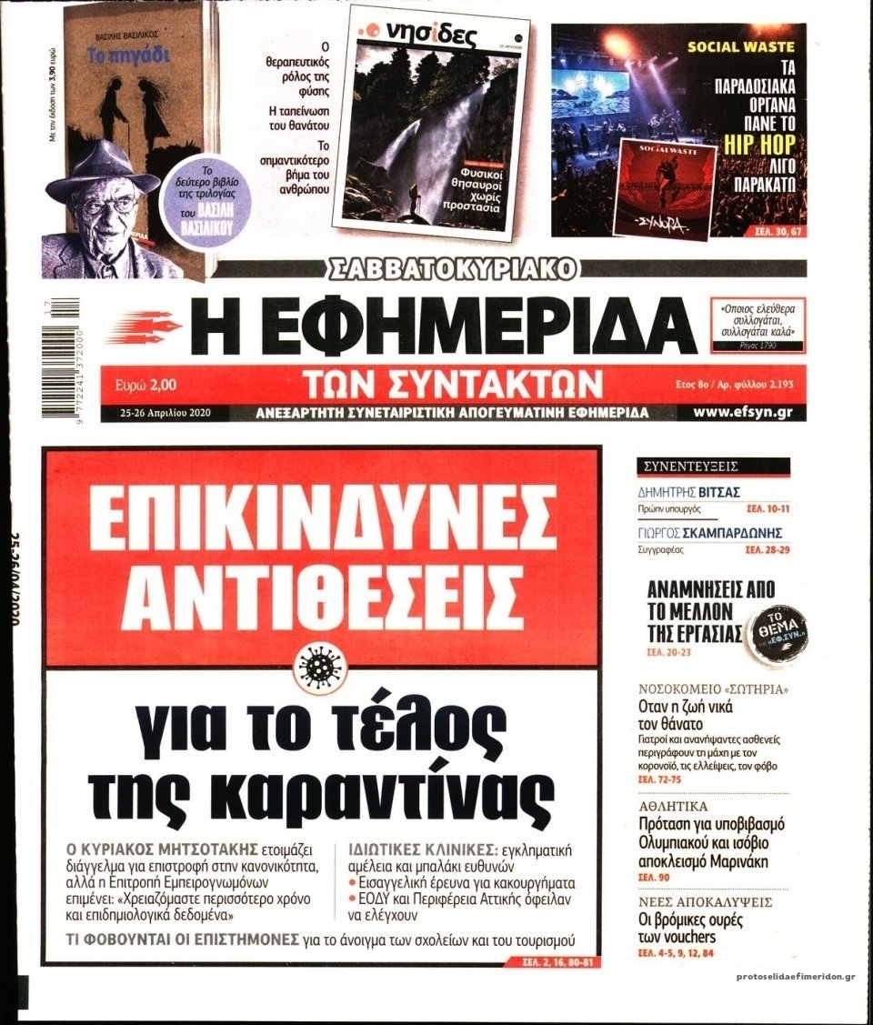 Διαβάστε όλα τα πρωτοσέλιδα των πολιτικών εφημερίδων του Σαββάτου 25 Απριλίου. Πλήρης ενημέρωση με μια γρήγορη ματιά!