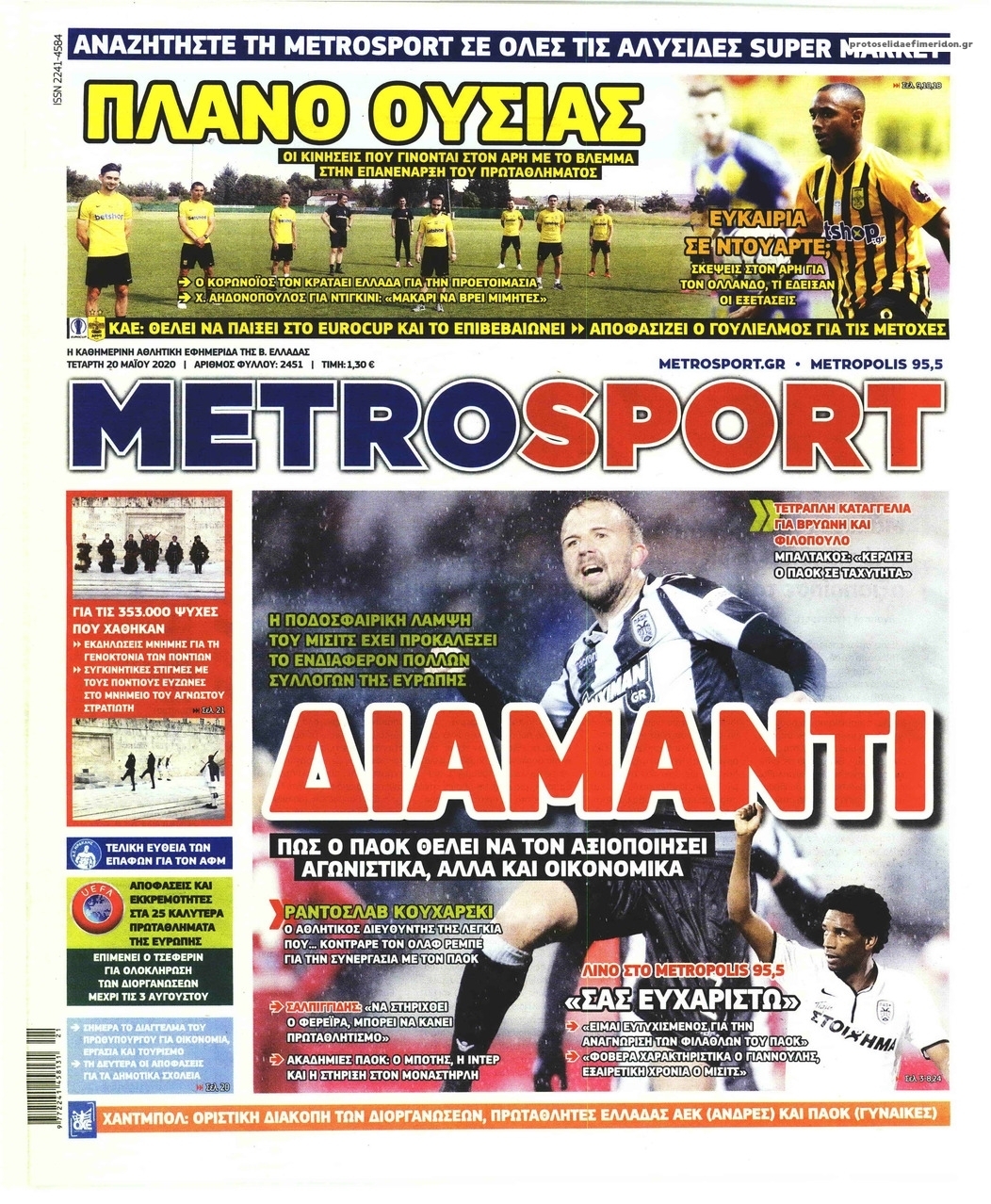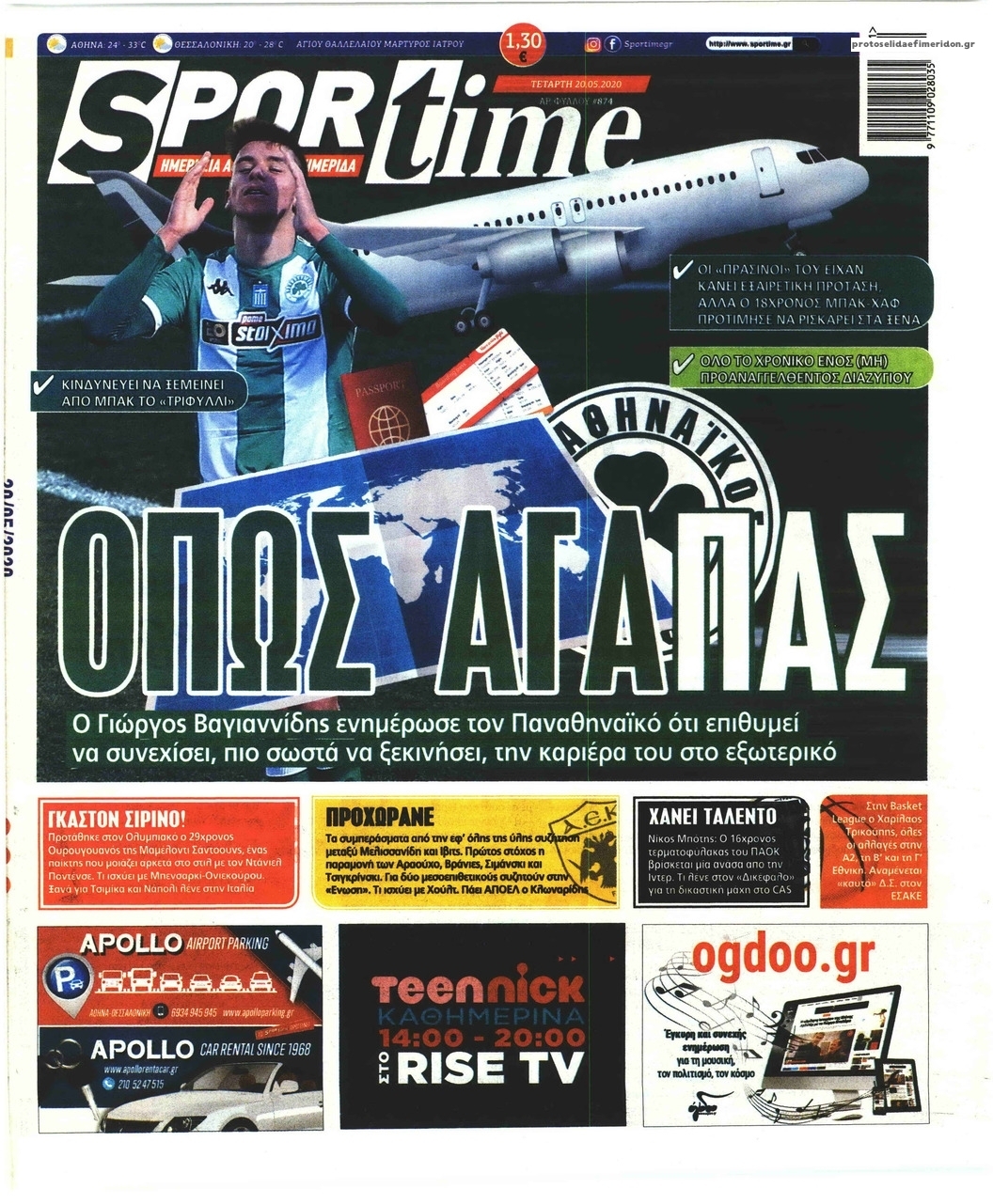 Διαβάστε όλα τα πρωτοσέλιδα των αθλητικών εφημερίδων της Τετάρτης 20 Μαΐου. Πλήρης ενημέρωση με μια γρήγορη ματιά!