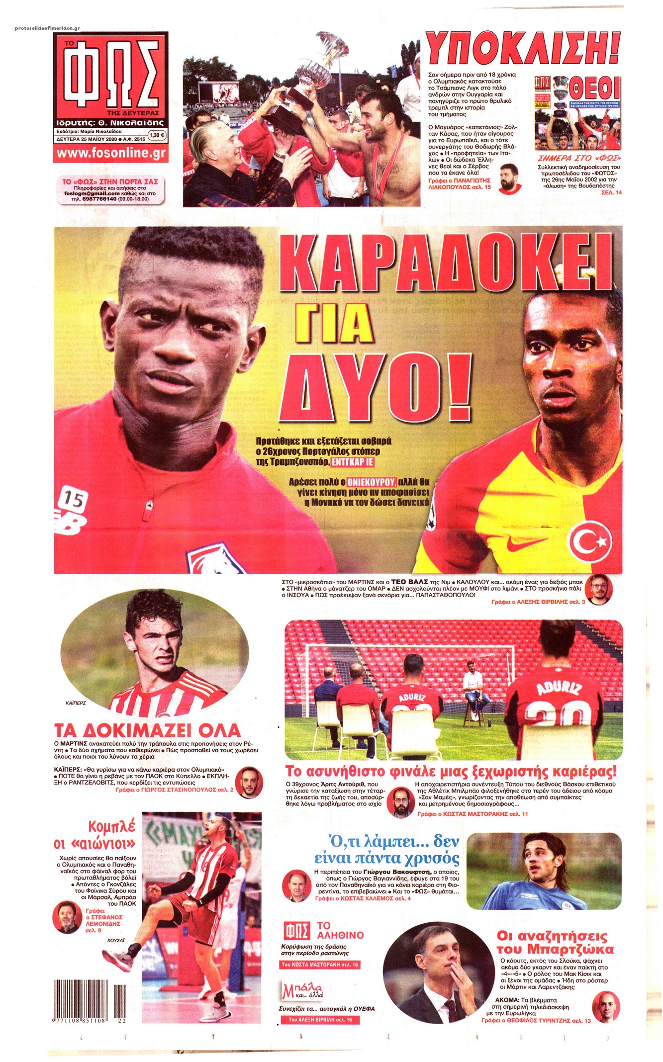 Διαβάστε όλα τα πρωτοσέλιδα των αθλητικών εφημερίδων της Δευτέρας 25 Μαΐου. Πλήρης ενημέρωση με μια γρήγορη ματιά!