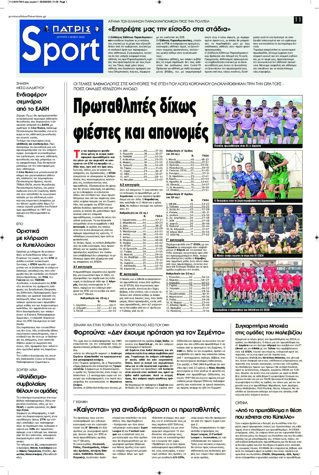 Διαβάστε όλα τα πρωτοσέλιδα των αθλητικών εφημερίδων της Δευτέρας 5 Μαΐου. Πλήρης ενημέρωση με μια γρήγορη ματιά!
