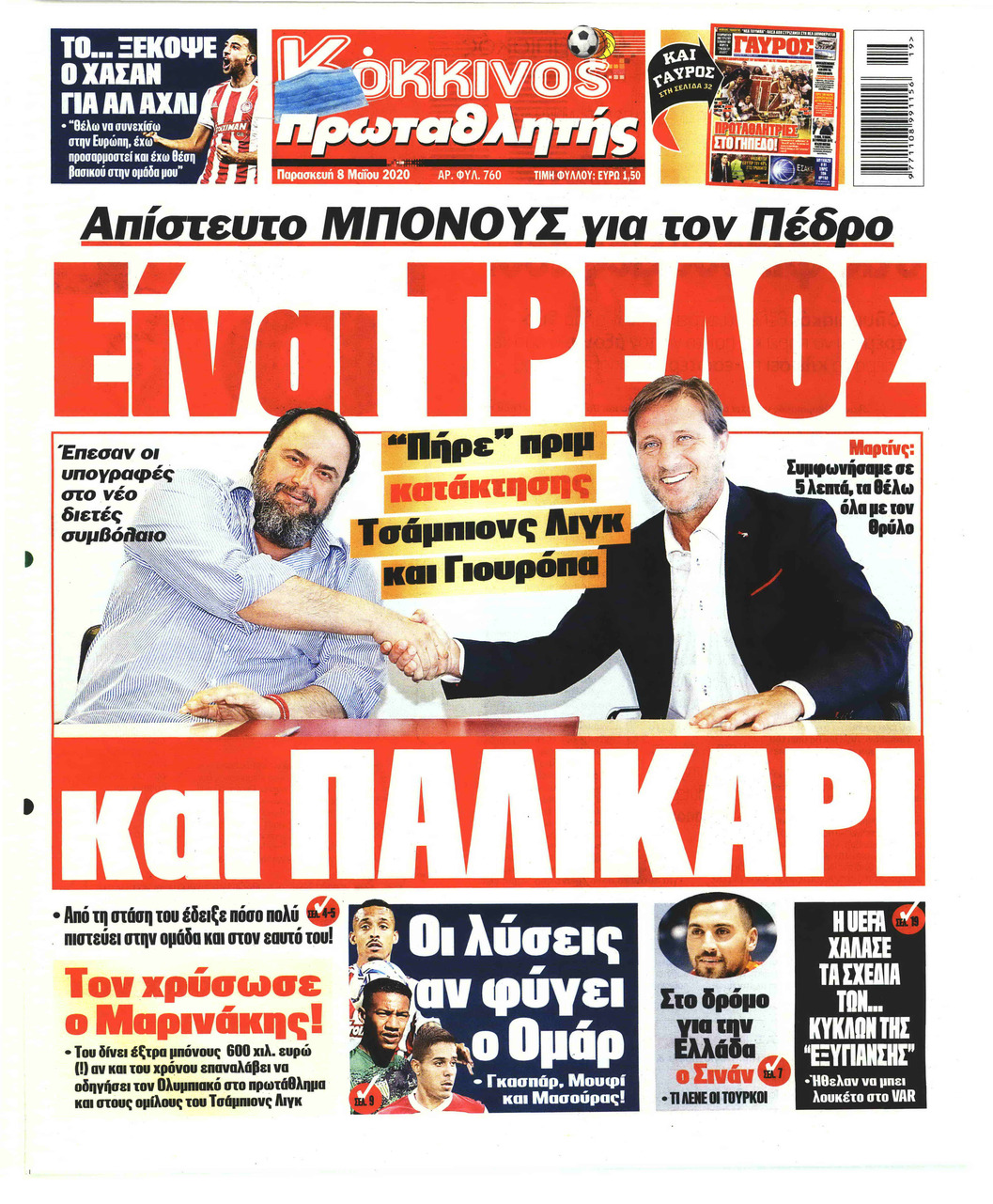 Διαβάστε όλα τα πρωτοσέλιδα των αθλητικών εφημερίδων της Παρασκευής 8 Μαΐου. Πλήρης ενημέρωση με μια γρήγορη ματιά!