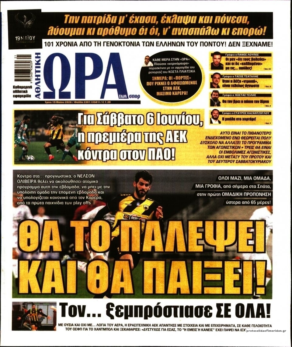 Διαβάστε όλα τα πρωτοσέλιδα των αθλητικών εφημερίδων της Τρίτης 19 Μαΐου. Πλήρης ενημέρωση με μια γρήγορη ματιά!