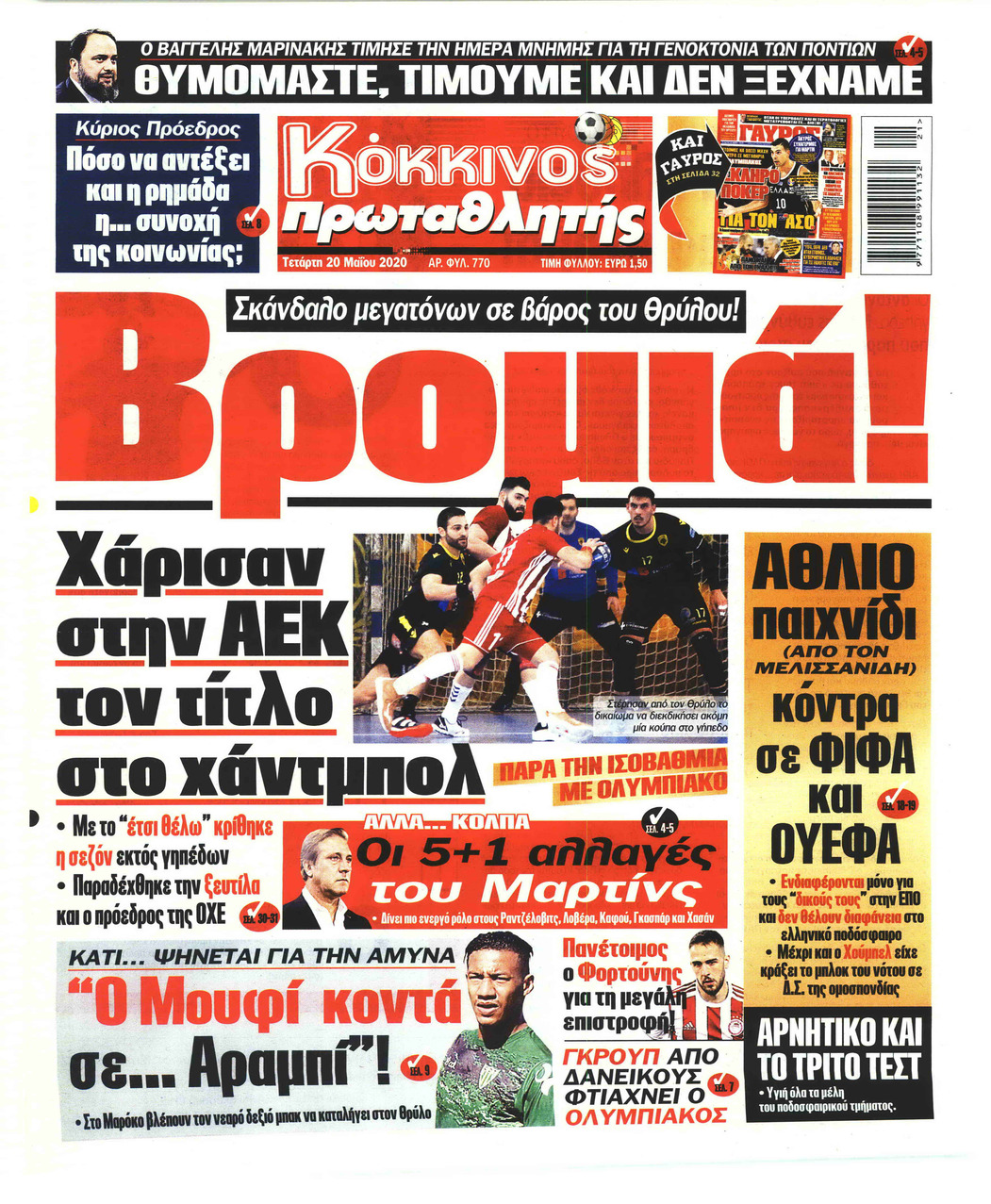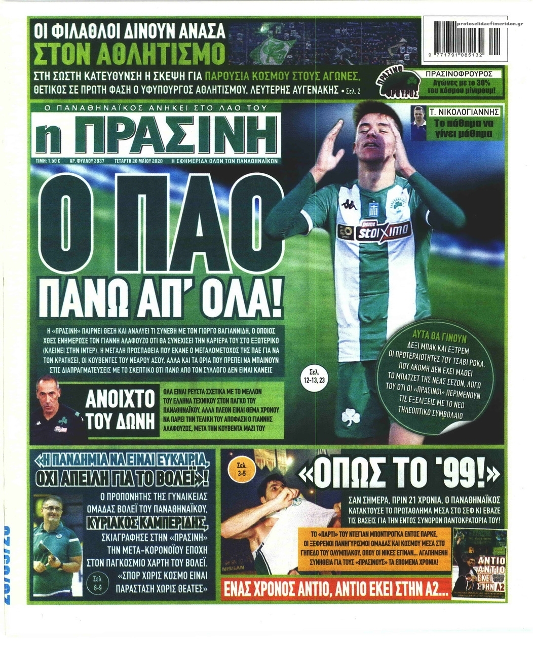 Διαβάστε όλα τα πρωτοσέλιδα των αθλητικών εφημερίδων της Τετάρτης 20 Μαΐου. Πλήρης ενημέρωση με μια γρήγορη ματιά!