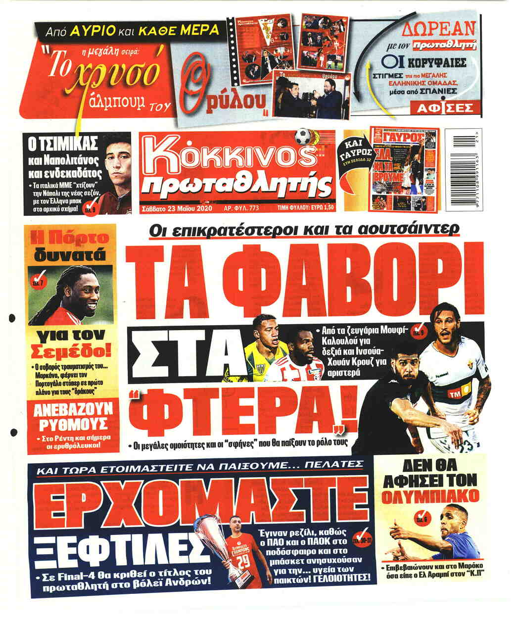 Διαβάστε όλα τα πρωτοσέλιδα των αθλητικών εφημερίδων του Σαββάτου 23 Μαΐου. Πλήρης ενημέρωση με μια γρήγορη ματιά!
