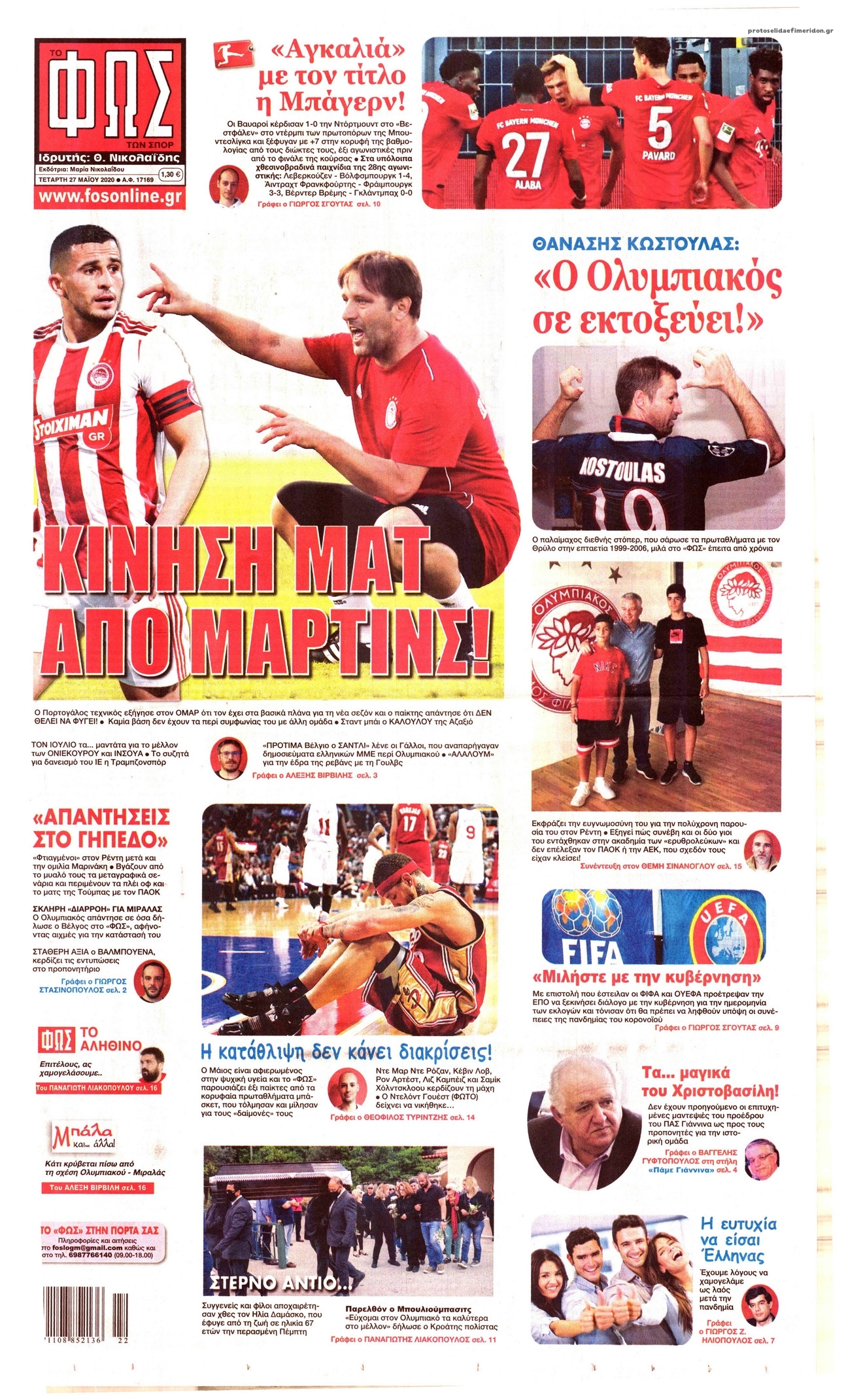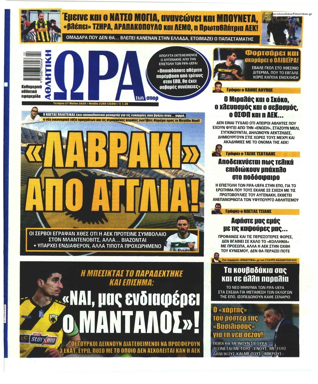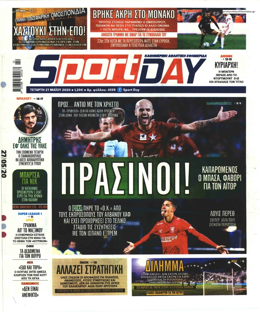 Διαβάστε όλα τα πρωτοσέλιδα των αθλητικών εφημερίδων της Τετάρτης 27 Μαΐου. Πλήρης ενημέρωση με μια γρήγορη ματιά!