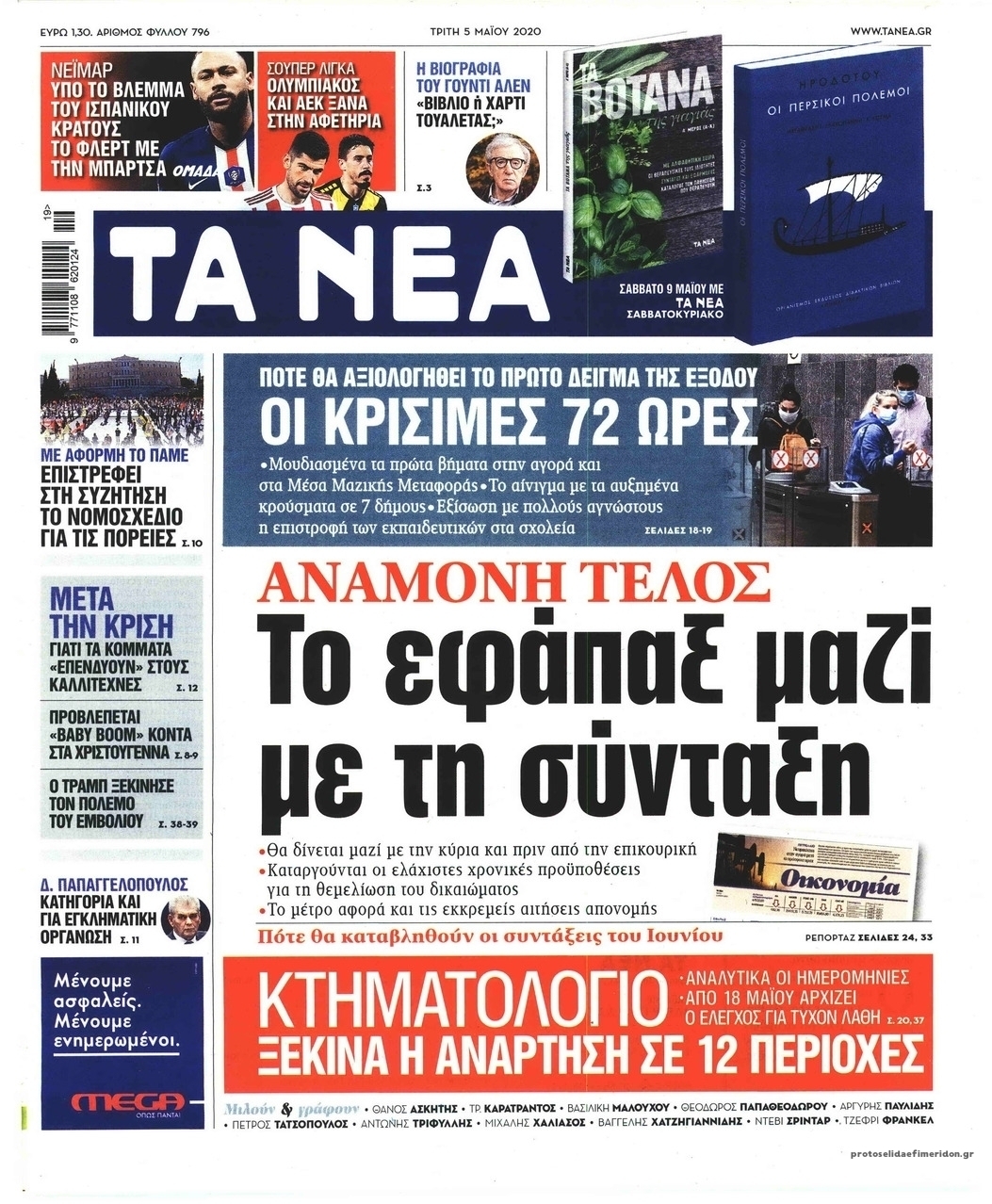 Διαβάστε όλα τα πρωτοσέλιδα των πολιτικών εφημερίδων της Τρίτης 5 Μαΐου. Πλήρης ενημέρωση με μια γρήγορη ματιά!