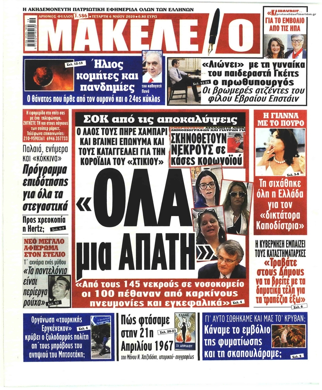 Διαβάστε όλα τα πρωτοσέλιδα των πολιτικών εφημερίδων της Τετάρτης 6 Μαΐου. Πλήρης ενημέρωση με μια γρήγορη ματιά!