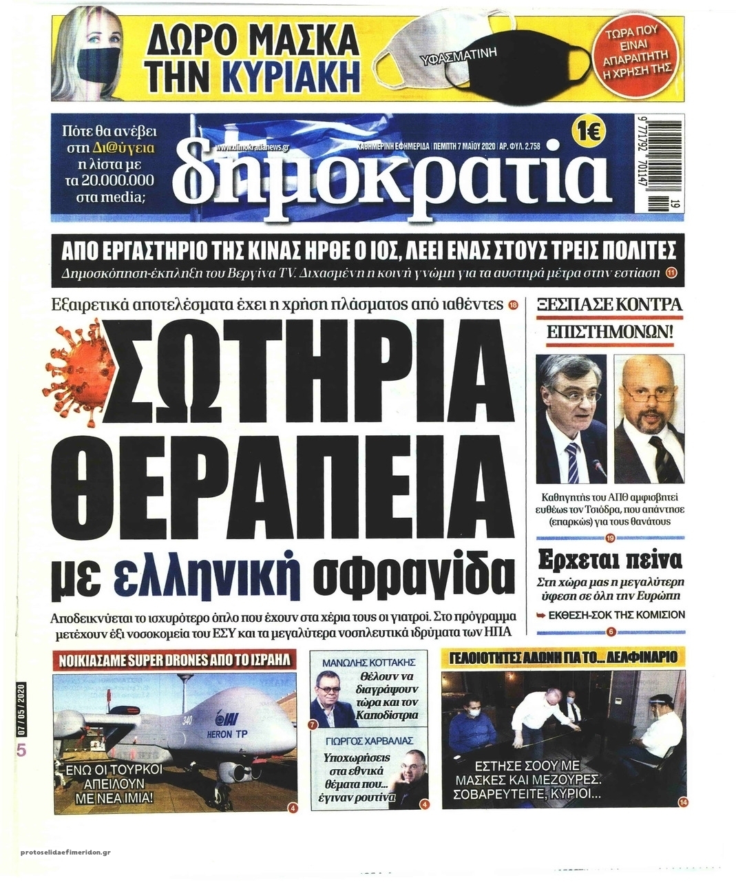 Διαβάστε όλα τα πρωτοσέλιδα των πολιτικών εφημερίδων της Πέμπτης 7 Μαΐου. Πλήρης ενημέρωση με μια γρήγορη ματιά!