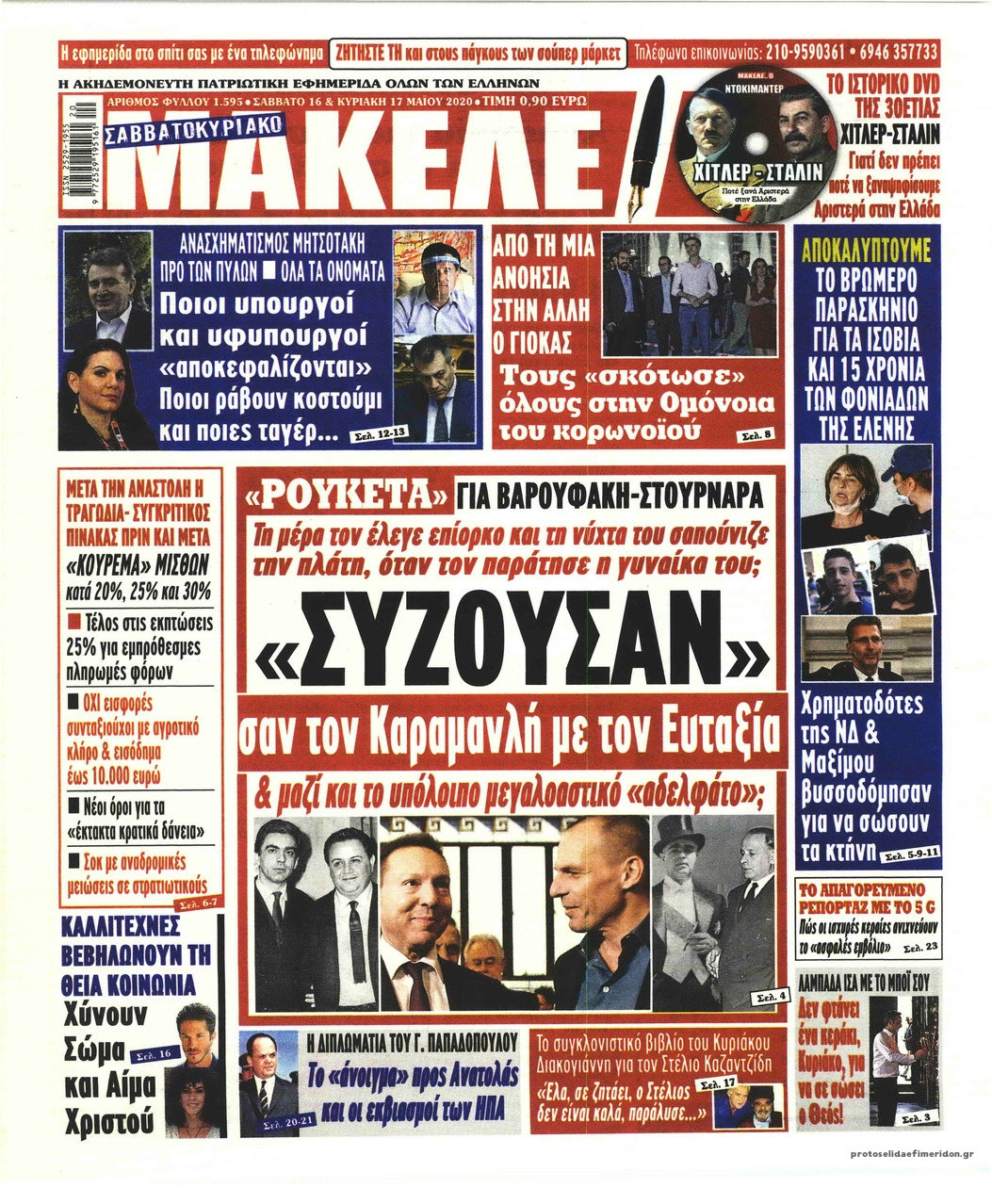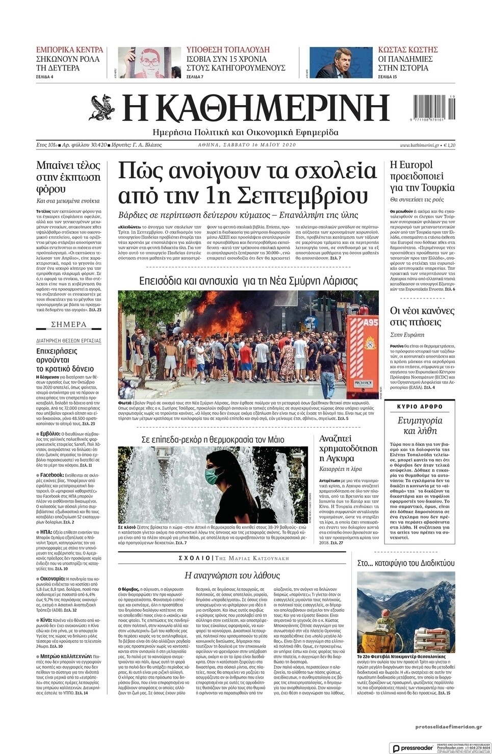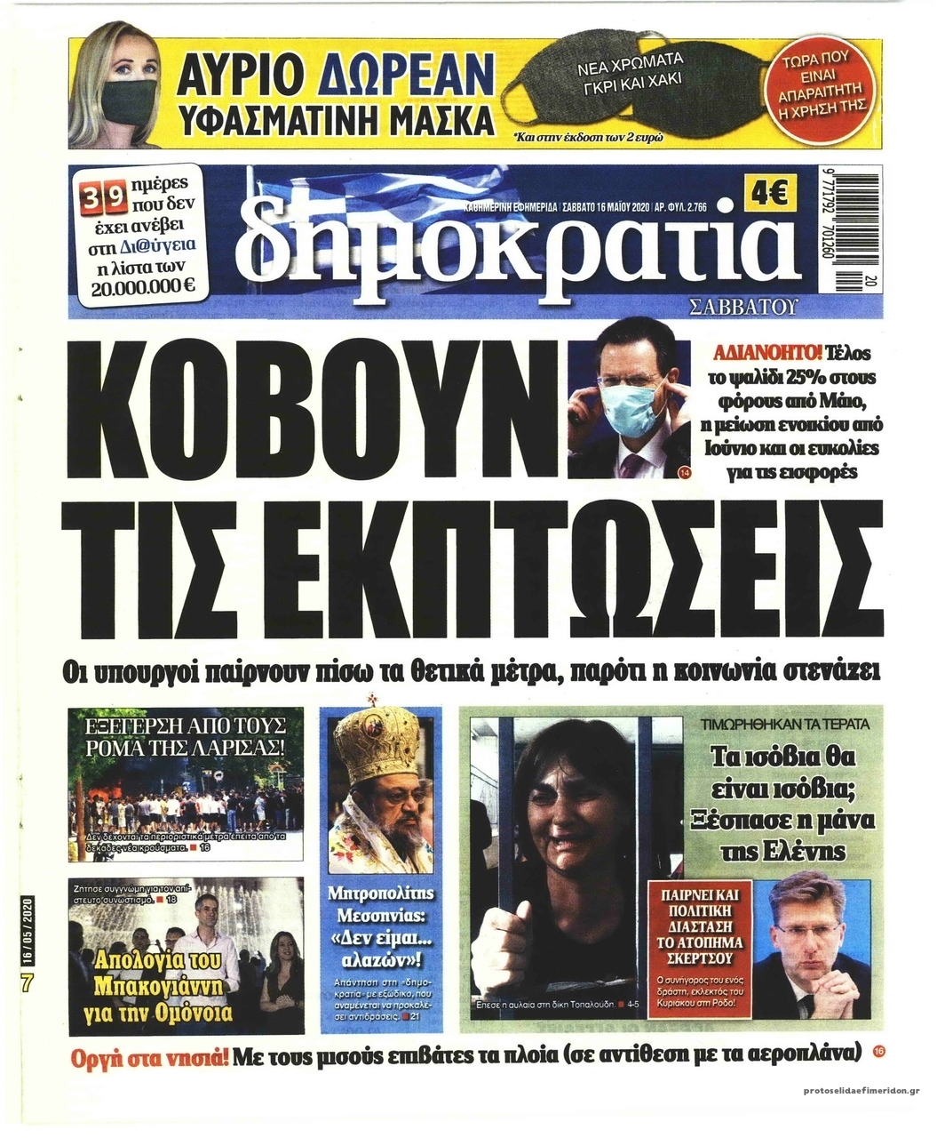 Διαβάστε όλα τα πρωτοσέλιδα των πολιτικών εφημερίδων του Σαββάτου 16 Μαΐου. Πλήρης ενημέρωση με μια γρήγορη ματιά!