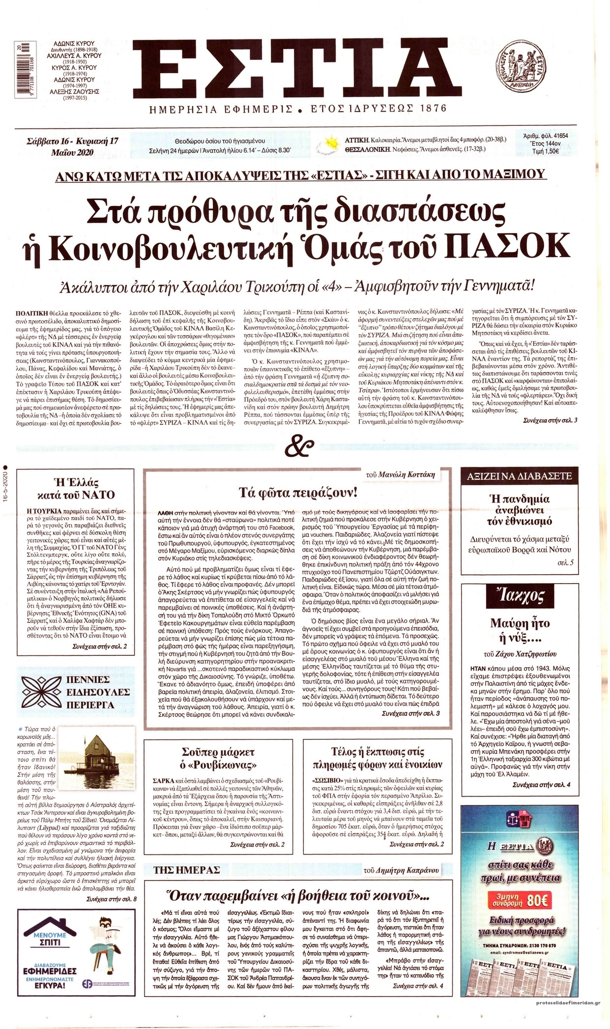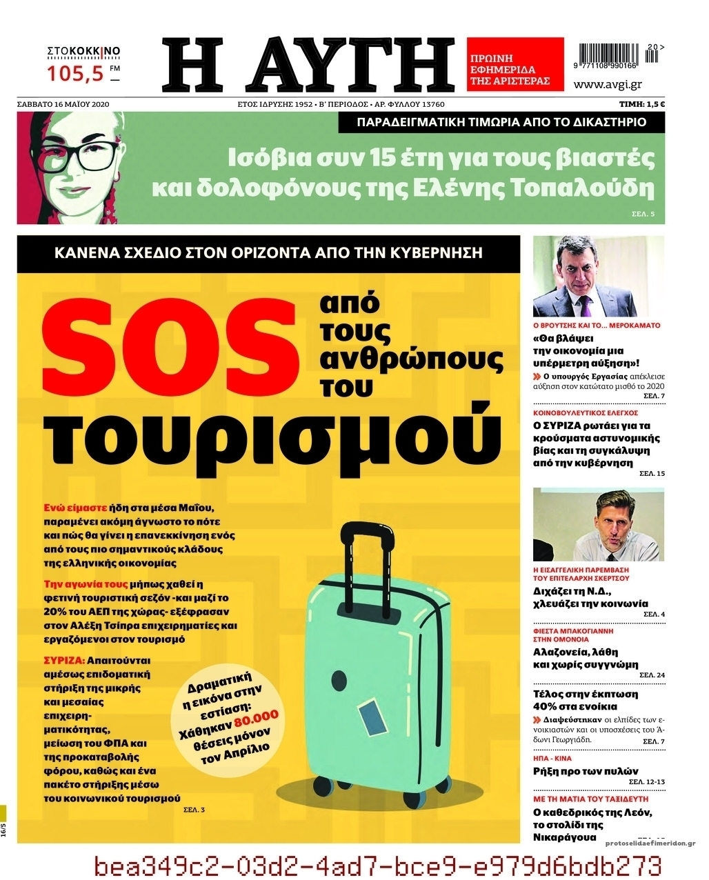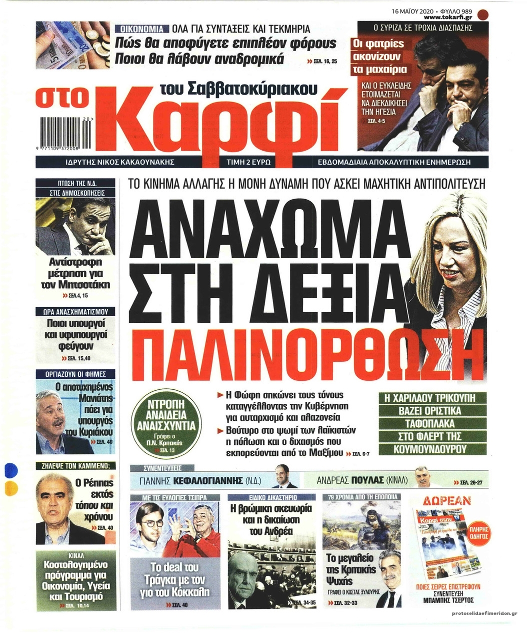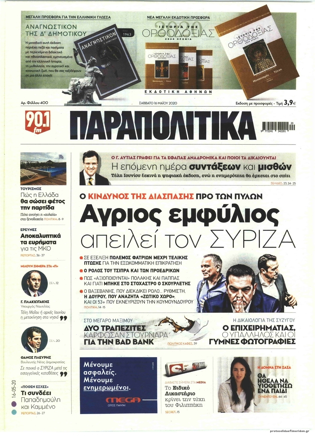 Διαβάστε όλα τα πρωτοσέλιδα των πολιτικών εφημερίδων του Σαββάτου 16 Μαΐου. Πλήρης ενημέρωση με μια γρήγορη ματιά!