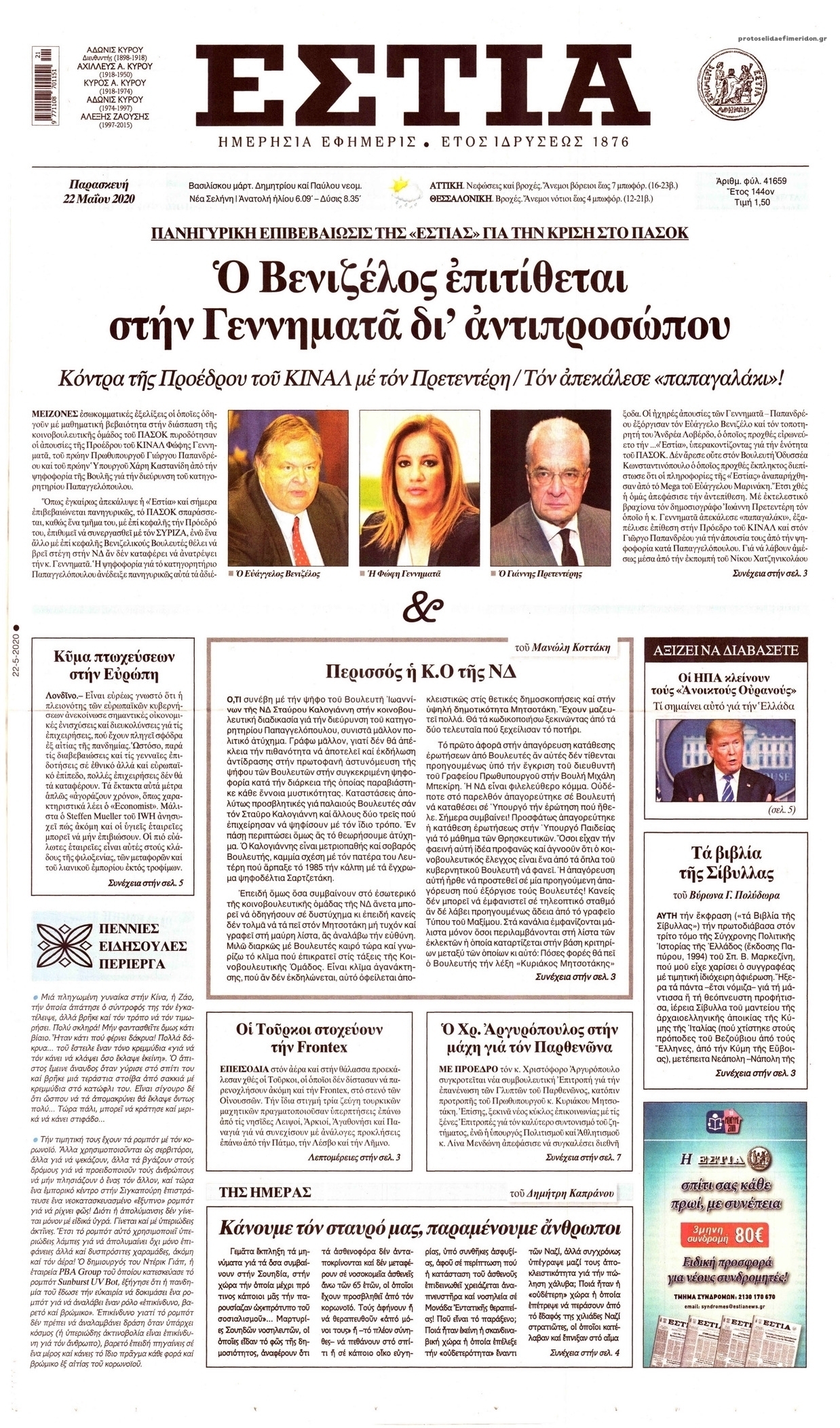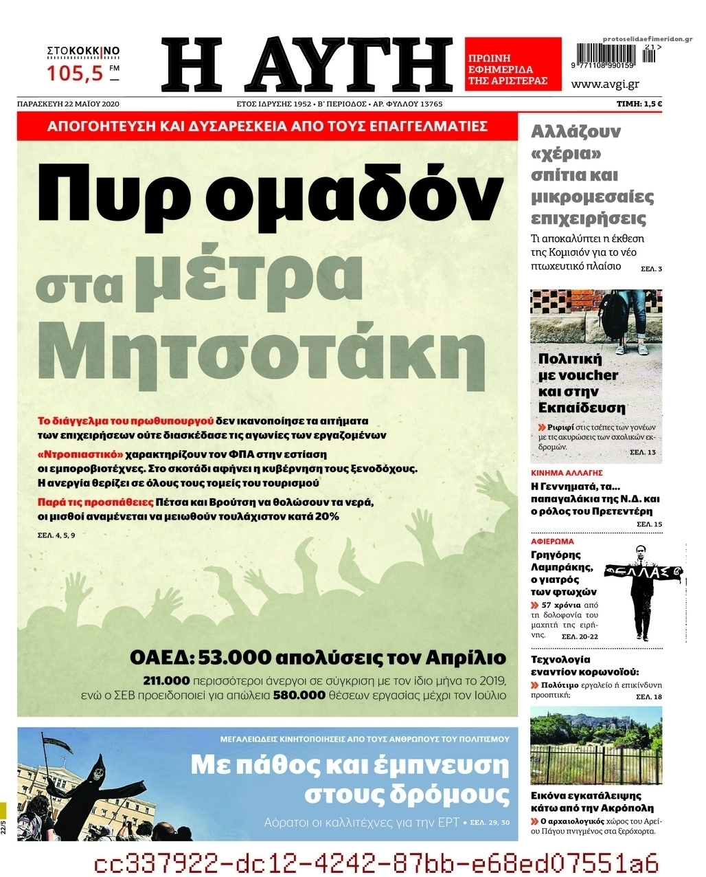Διαβάστε όλα τα πρωτοσέλιδα των πολιτικών εφημερίδων της Παρασκευής 22 Μαΐου. Πλήρης ενημέρωση με μια γρήγορη ματιά!