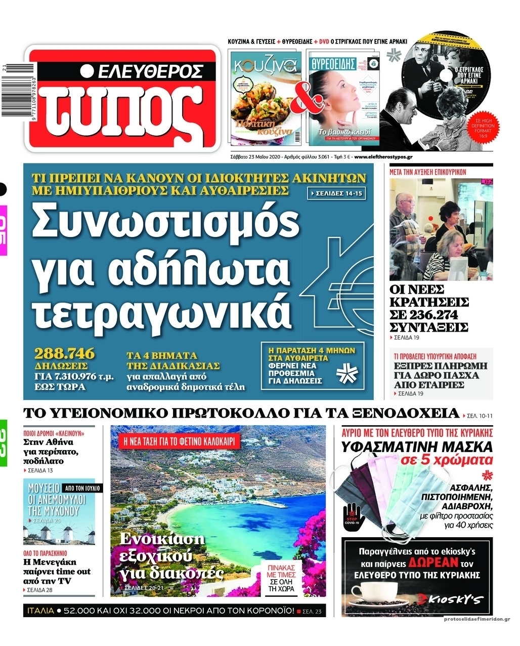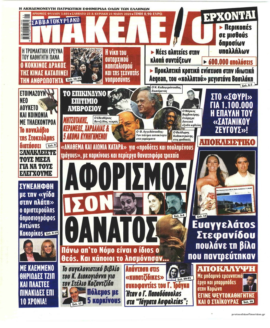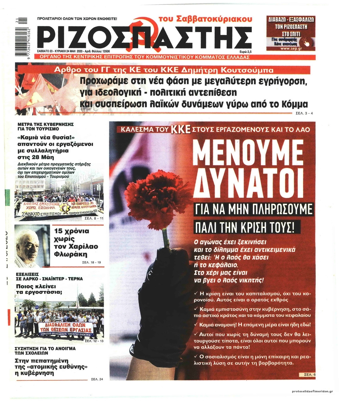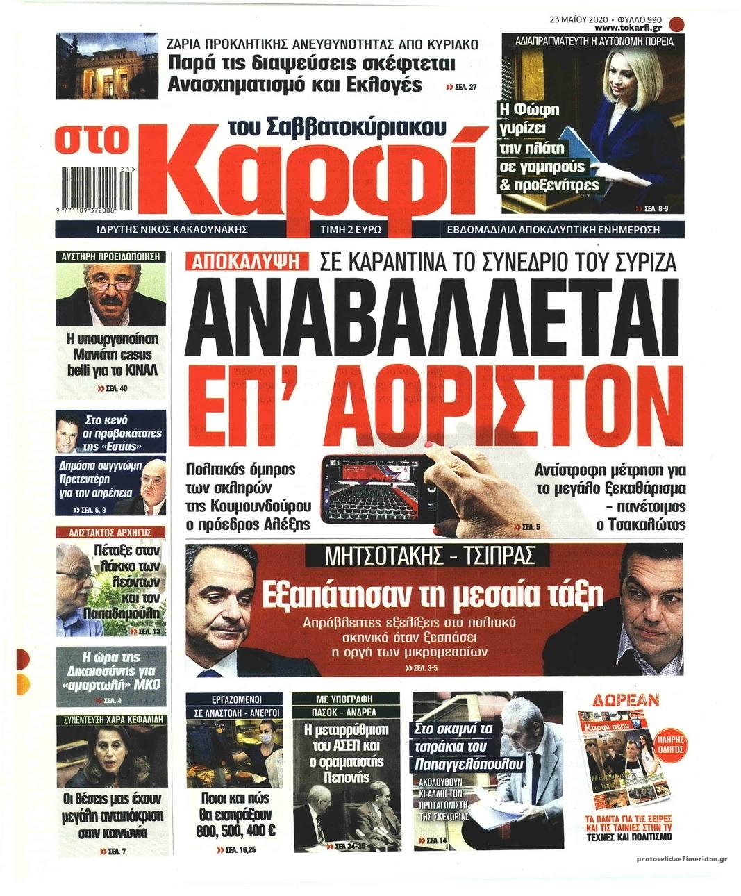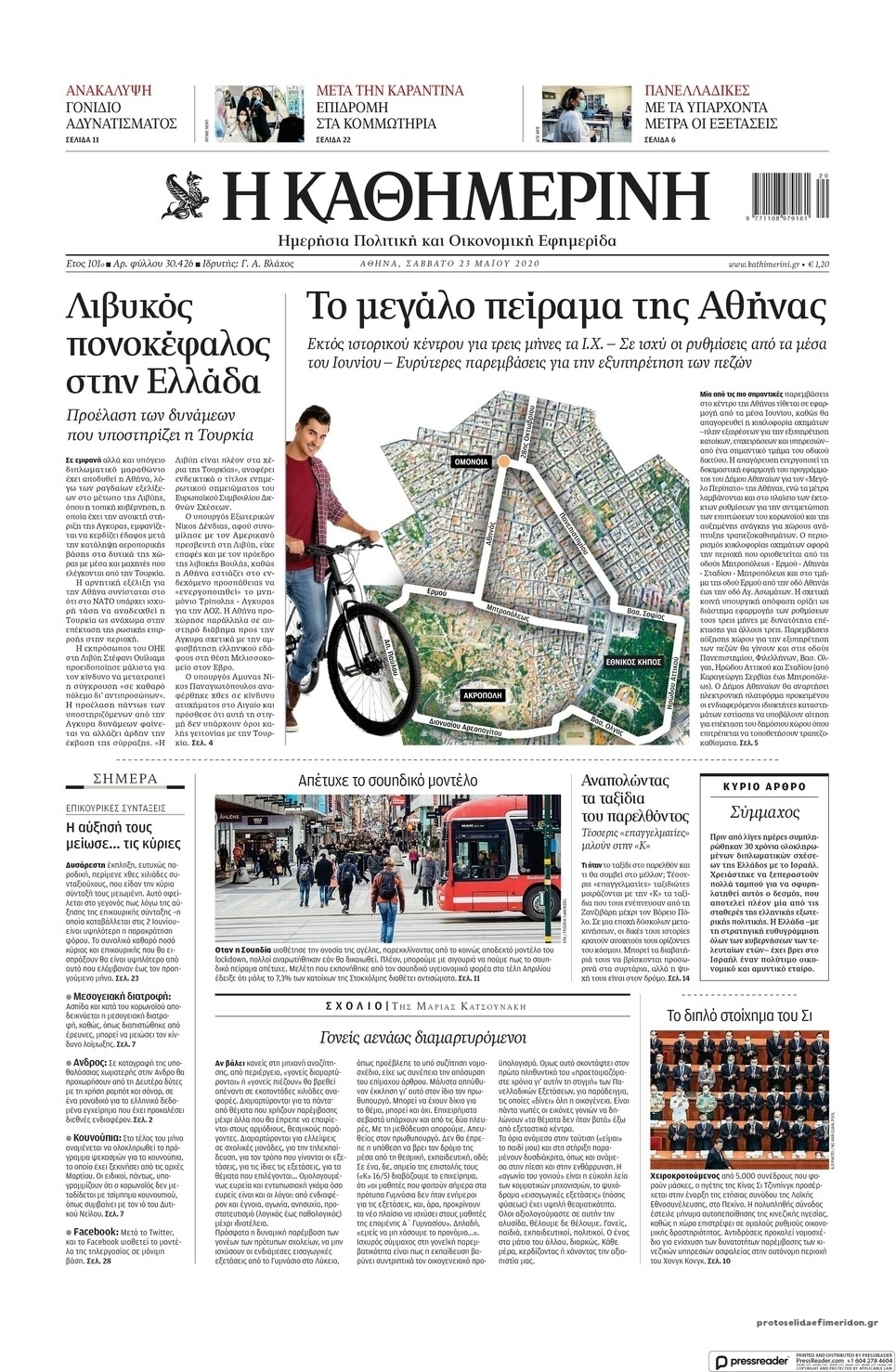 Διαβάστε όλα τα πρωτοσέλιδα των πολιτικών εφημερίδων του Σαββάτου 23 Μαΐου. Πλήρης ενημέρωση με μια γρήγορη ματιά!