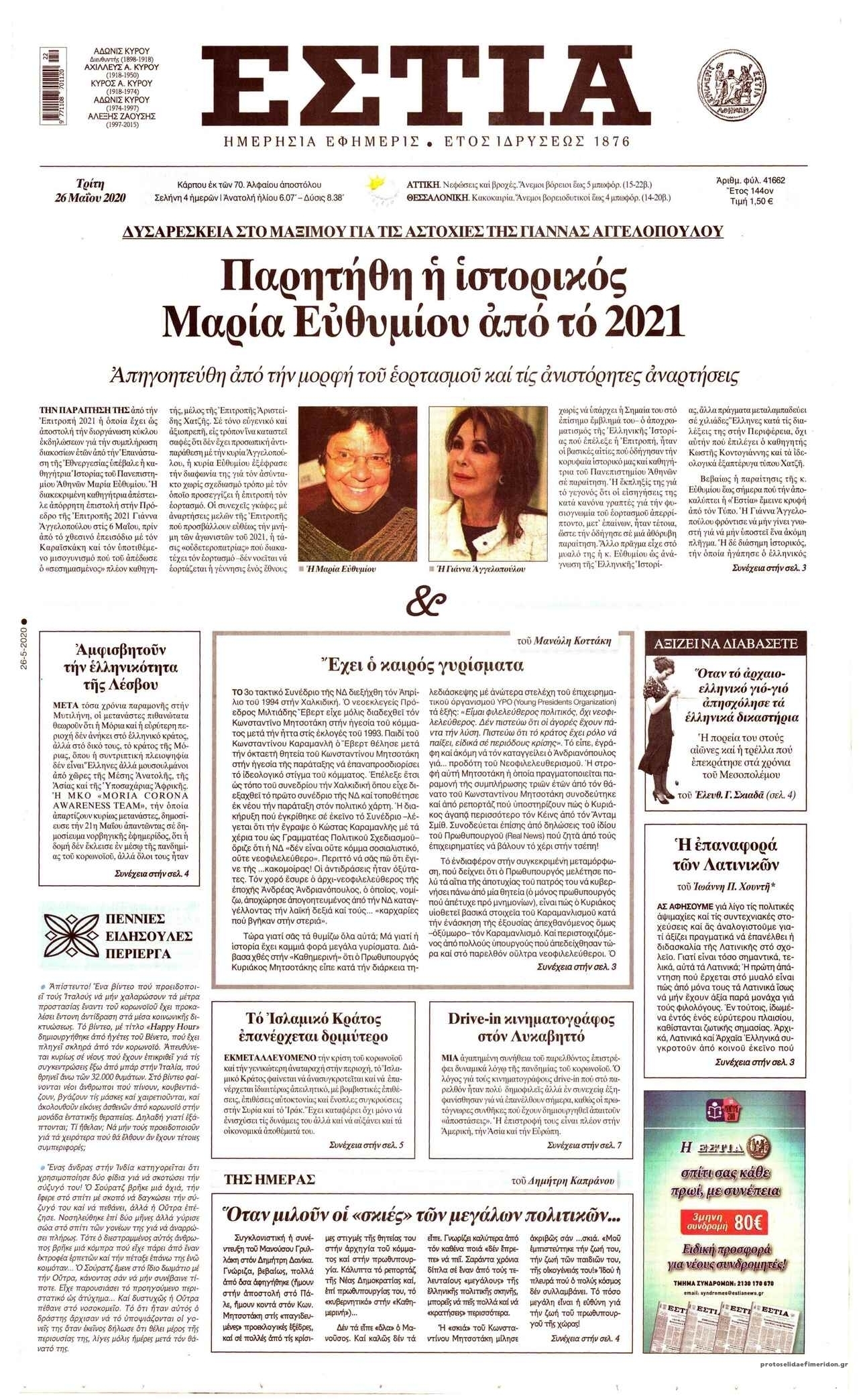 Διαβάστε όλα τα πρωτοσέλιδα των πολιτικών εφημερίδων της Τρίτης 26 Μαΐου. Πλήρης ενημέρωση με μια γρήγορη ματιά!