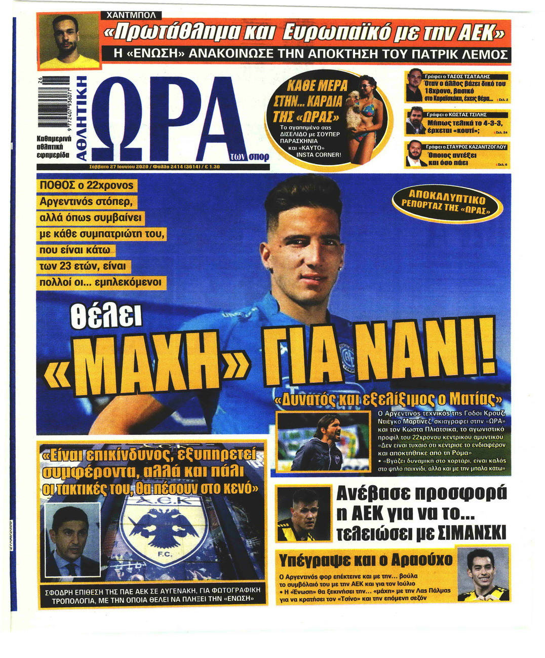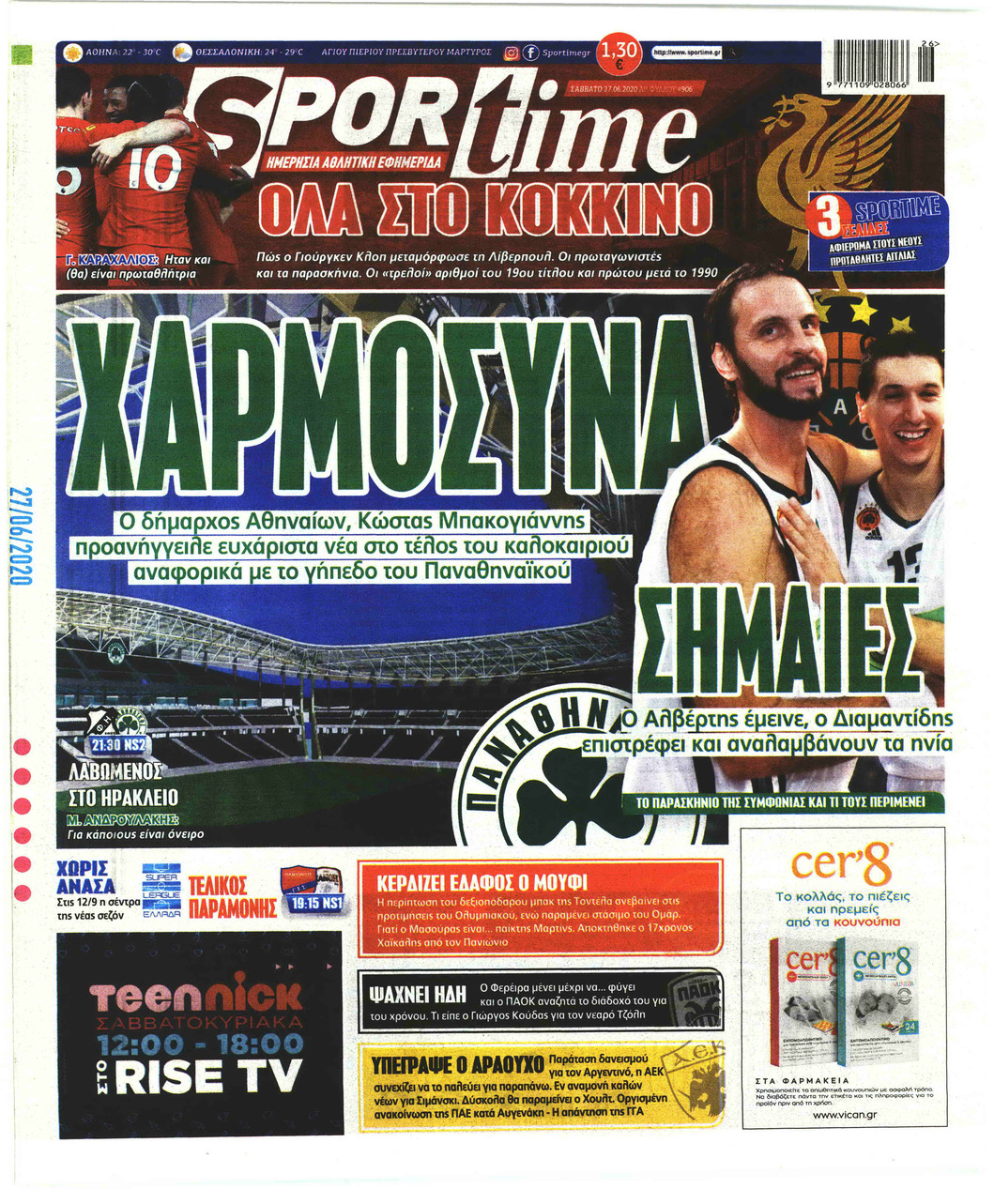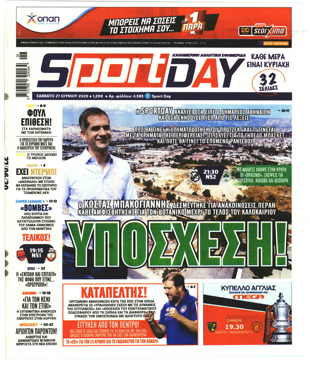 Διαβάστε όλα τα πρωτοσέλιδα των αθλητικών εφημερίδων του Σαββάτου 27 Ιουνίου. Πλήρης ενημέρωση με μια γρήγορη ματιά!