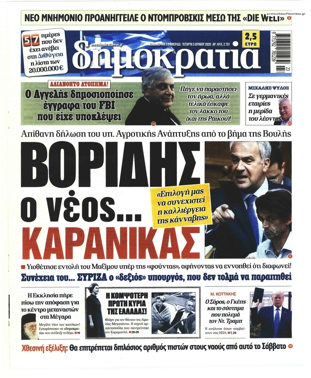 Διαβάστε όλα τα πρωτοσέλιδα των πολιτικών εφημερίδων της Τετάρτης 3 Ιουνίου. Πλήρης ενημέρωση με μια γρήγορη ματιά!