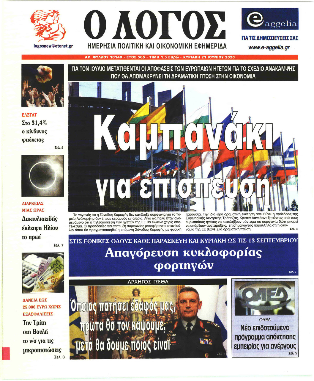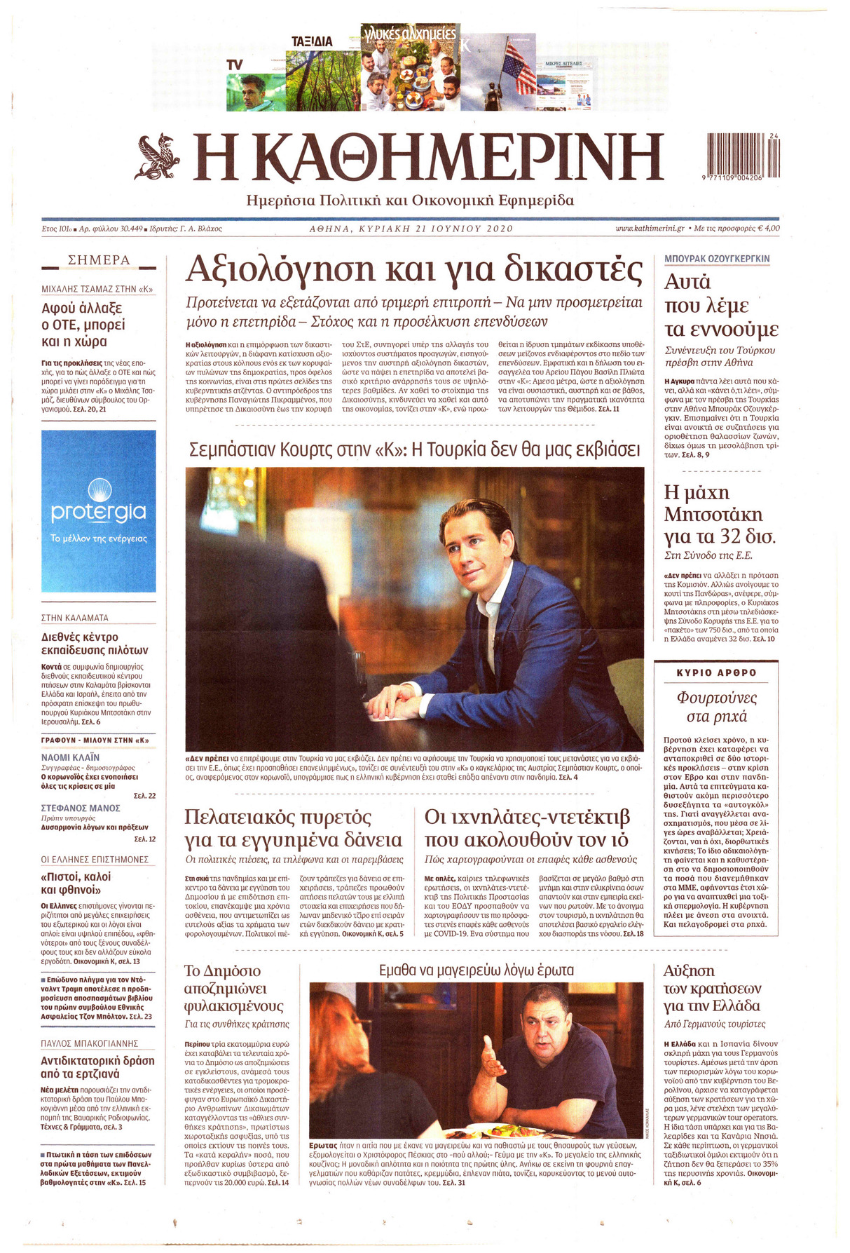 NewsMEDIASLIDER Διαβάστε όλα τα πρωτοσέλιδα των πολιτικών εφημερίδων της Κυριακής 21 Ιουνίου 2020 FacebookXEmailViberWhatsAppCopy URLΤυπώνω Διαβάστε όλα τα πρωτοσέλιδα των πολιτικών εφημερίδων της Κυριακής 21 Ιουνίου. Πλήρης ενημέρωση με μια γρήγορη ματιά!