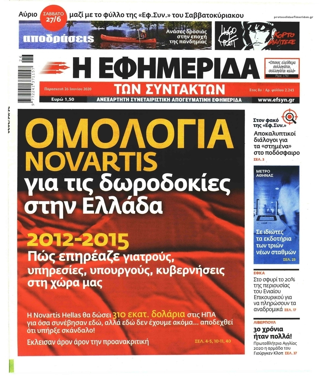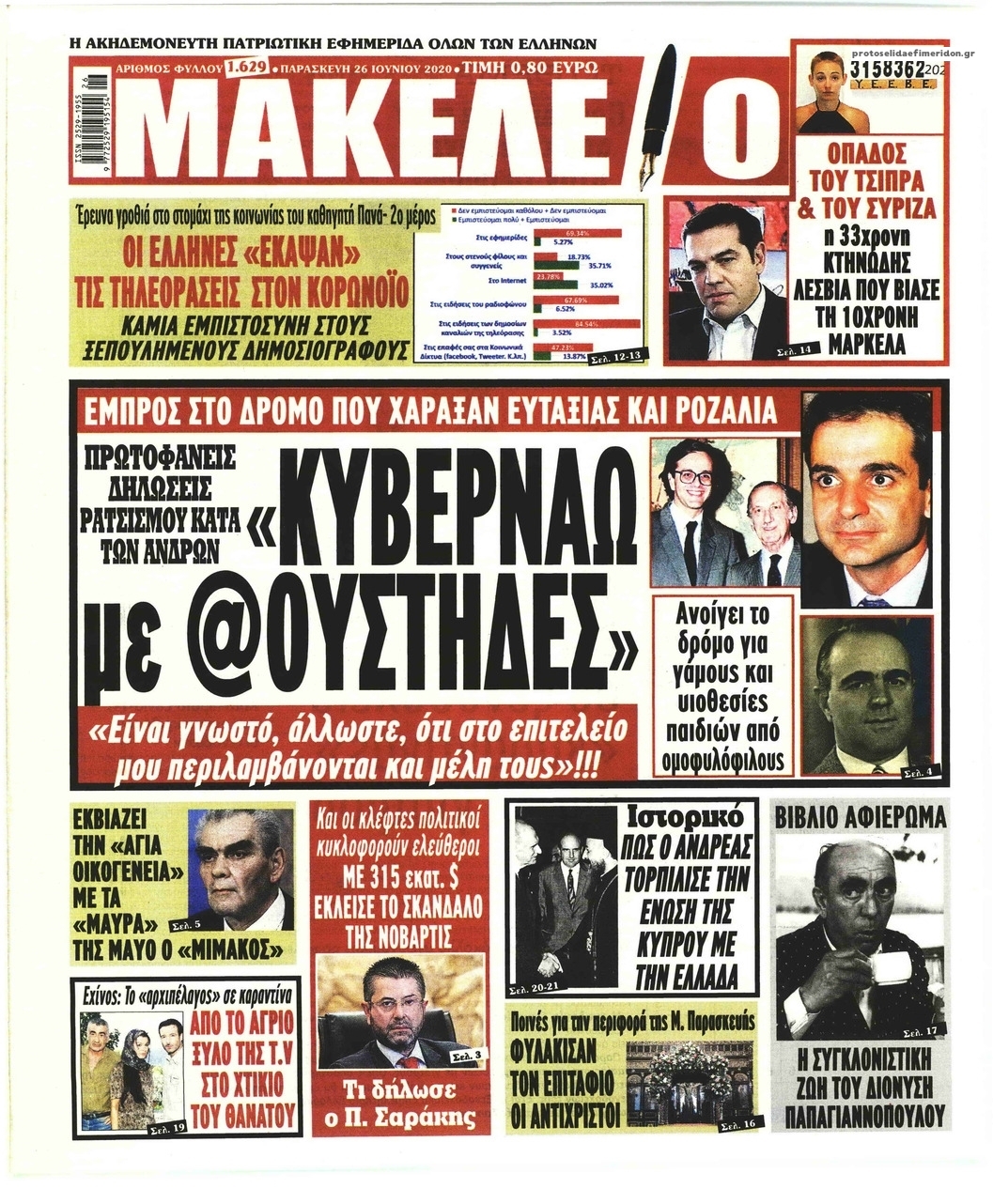 NewsMEDIASLIDER Διαβάστε όλα τα πρωτοσέλιδα των πολιτικών εφημερίδων της Παρασκευής 26 Ιουνίου 2020 FacebookTwitterEmailViberWhatsAppCopy URLΤυπώνω Διαβάστε όλα τα πρωτοσέλιδα των πολιτικών εφημερίδων της Παρασκευής 26 Ιουνίου. Πλήρης ενημέρωση με μια γρήγορη ματιά!