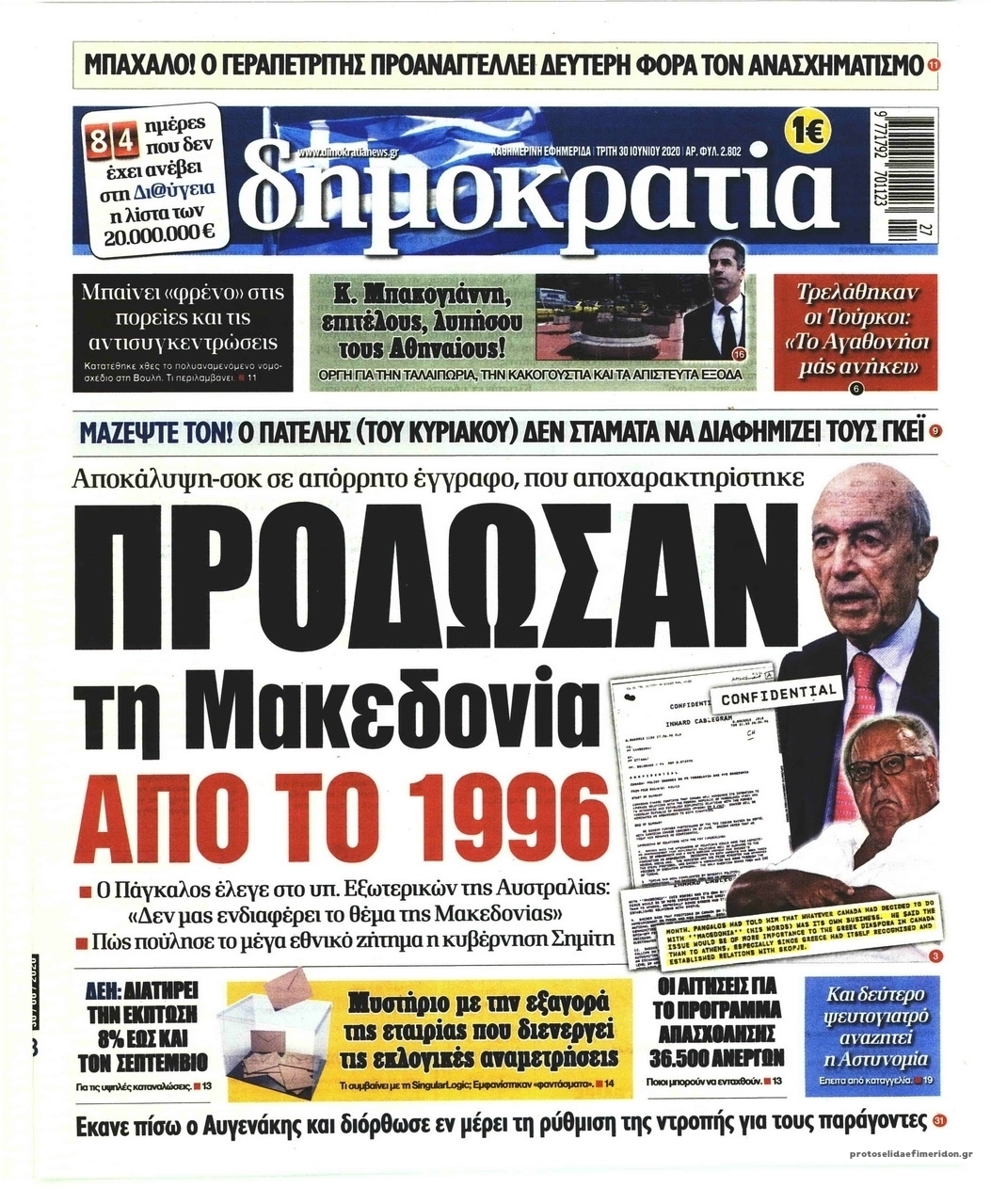 NewsMEDIA Διαβάστε όλα τα πρωτοσέλιδα των πολιτικών εφημερίδων της Τρίτης 30 Ιουνίου 2020 FacebookTwitterEmailViberWhatsAppCopy URLΤυπώνω Διαβάστε όλα τα πρωτοσέλιδα των πολιτικών εφημερίδων της Τρίτης 30 Ιουνίου. Πλήρης ενημέρωση με μια γρήγορη ματιά!