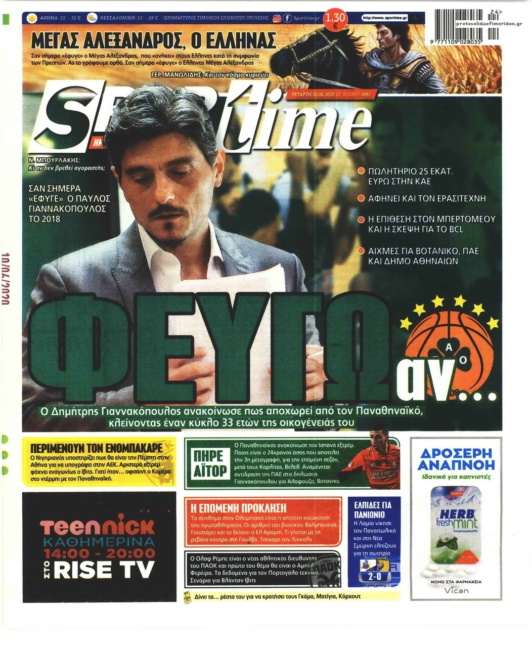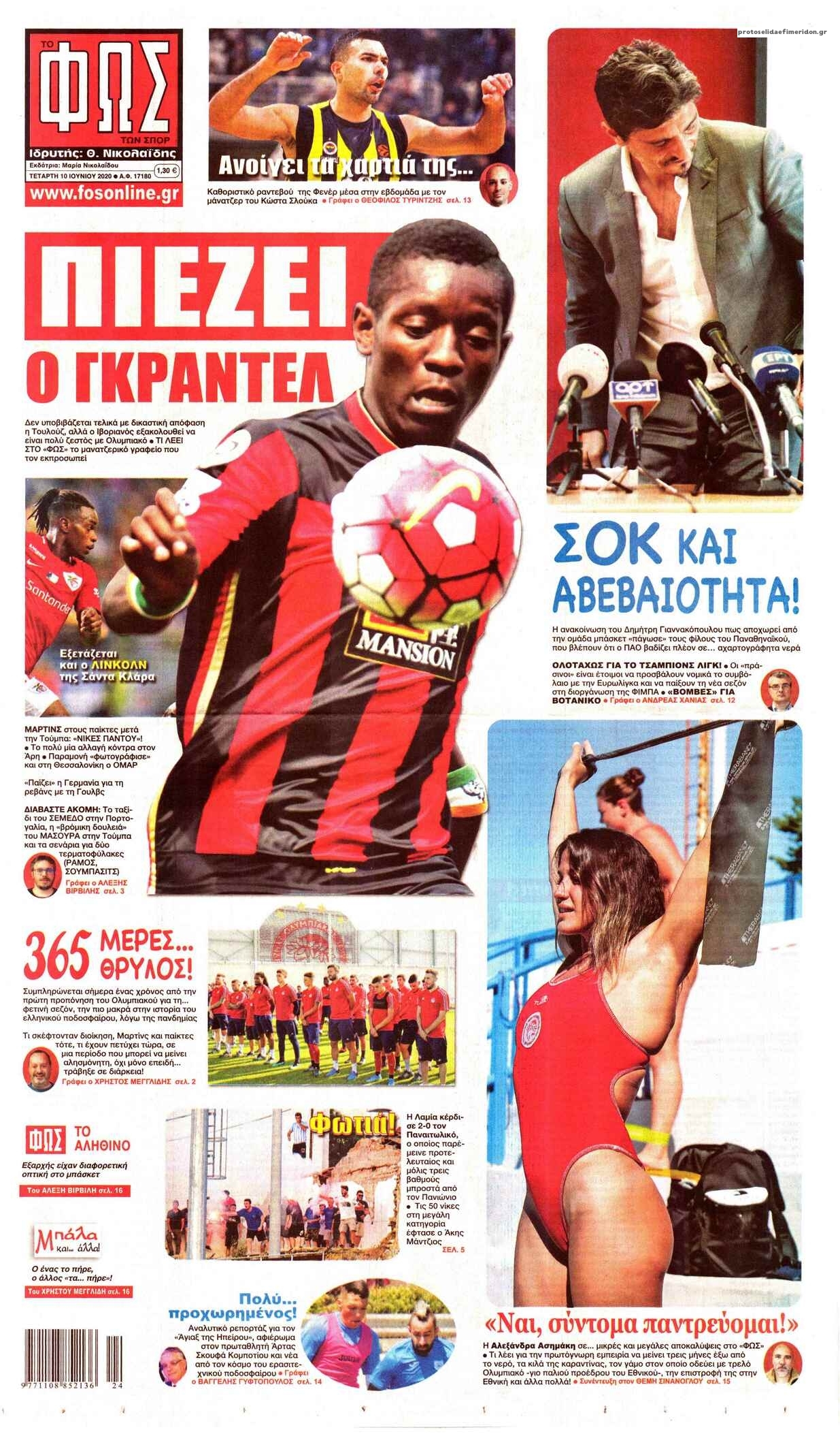 Διαβάστε όλα τα πρωτοσέλιδα των αθλητικών εφημερίδων της Τετάρτης 10 Ιουνίου. Πλήρης ενημέρωση με μια γρήγορη ματιά!