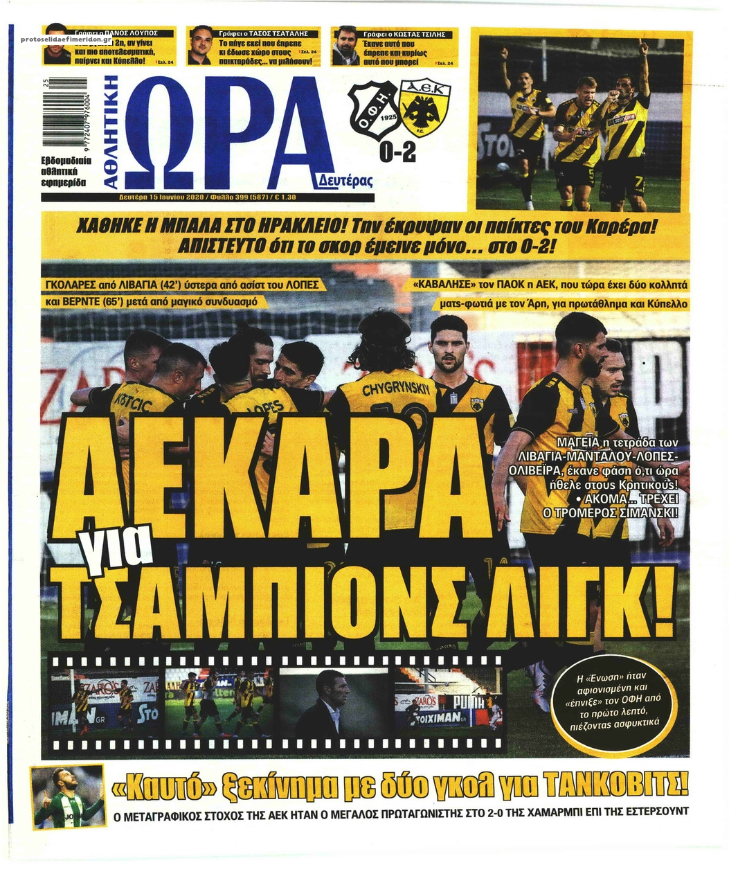Διαβάστε όλα τα πρωτοσέλιδα των αθλητικών εφημερίδων της Δευτέρας 15 Ιουνίου. Πλήρης ενημέρωση με μια γρήγορη ματιά!