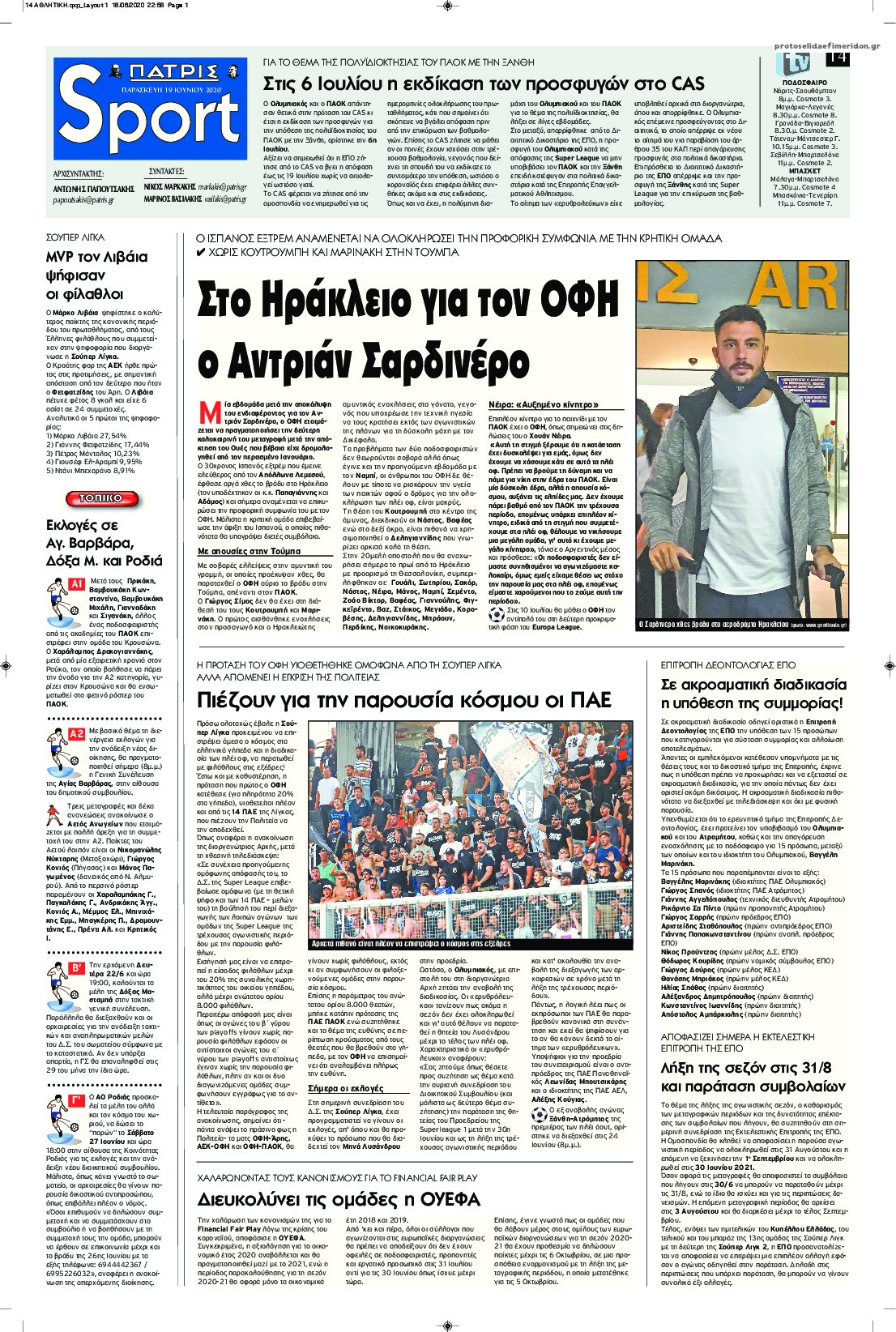 Διαβάστε όλα τα πρωτοσέλιδα των αθλητικών εφημερίδων της Παρασκευής 19 Ιουνίου. Πλήρης ενημέρωση με μια γρήγορη ματιά!