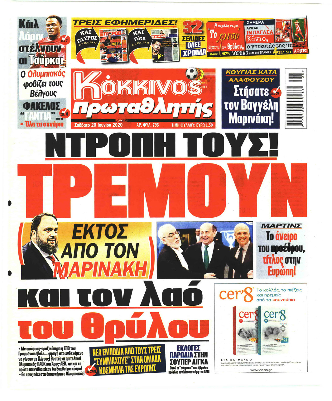 Διαβάστε όλα τα πρωτοσέλιδα των αθλητικών εφημερίδων του Σαββάτου 20 Ιουνίου. Πλήρης ενημέρωση με μια γρήγορη ματιά!