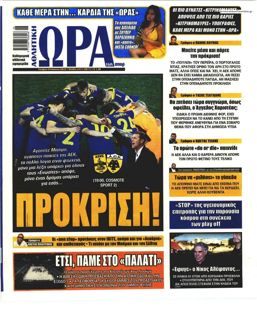 Διαβάστε όλα τα πρωτοσέλιδα των αθλητικών εφημερίδων της Τετάρτης 24 Ιουνίου. Πλήρης ενημέρωση με μια γρήγορη ματιά!