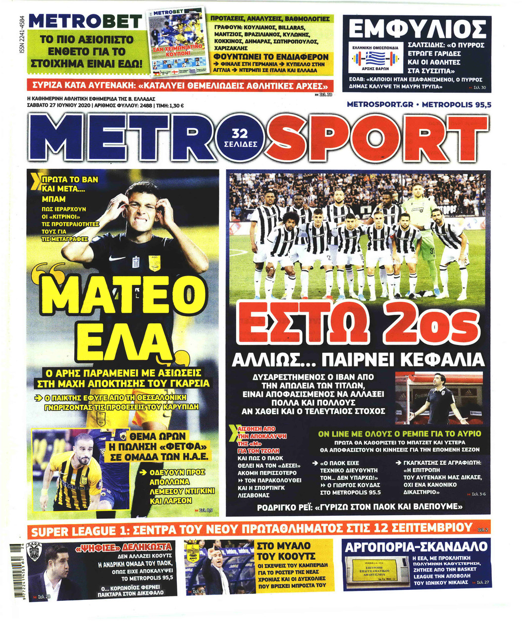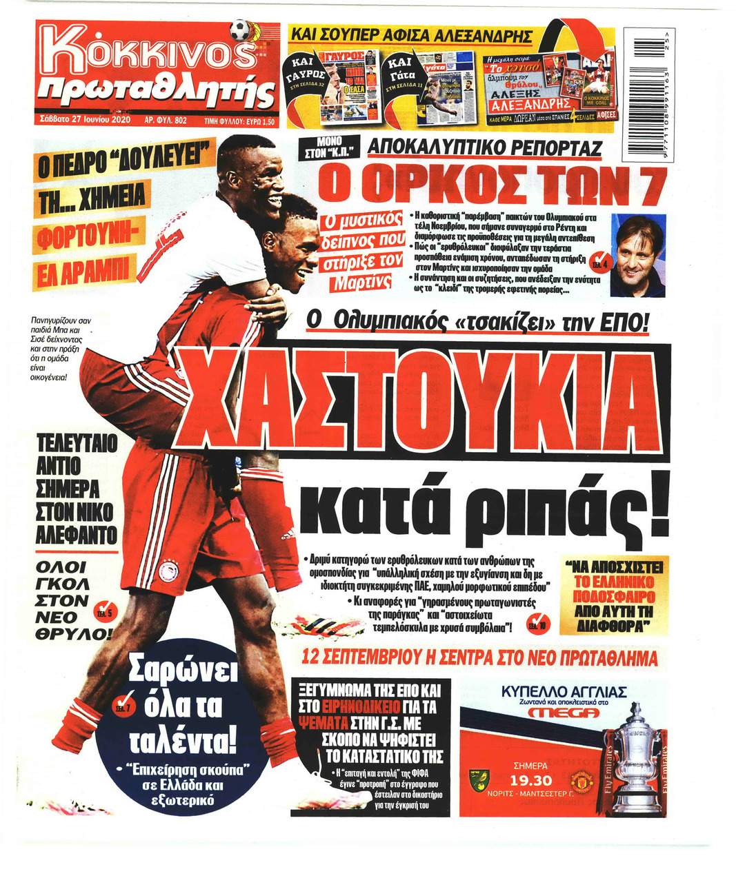 Διαβάστε όλα τα πρωτοσέλιδα των αθλητικών εφημερίδων του Σαββάτου 27 Ιουνίου. Πλήρης ενημέρωση με μια γρήγορη ματιά!