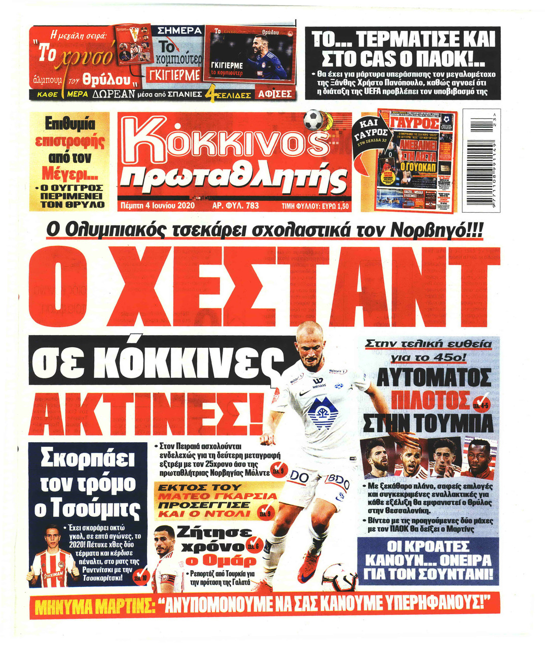 Διαβάστε όλα τα πρωτοσέλιδα των αθλητικών εφημερίδων της Πέμπτης 4 Ιουνίου. Πλήρης ενημέρωση με μια γρήγορη ματιά!