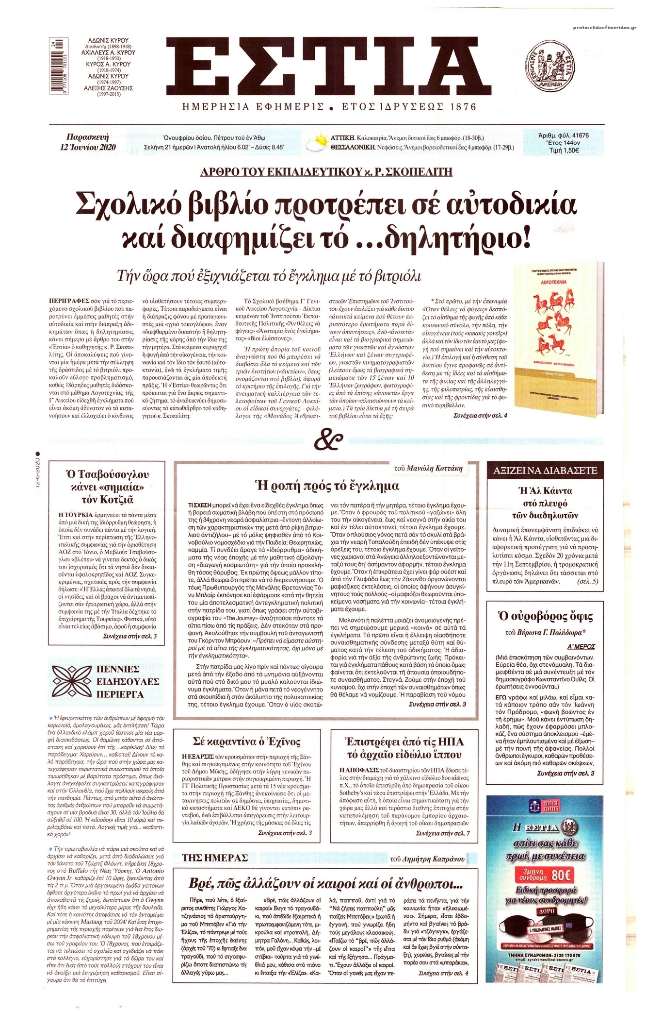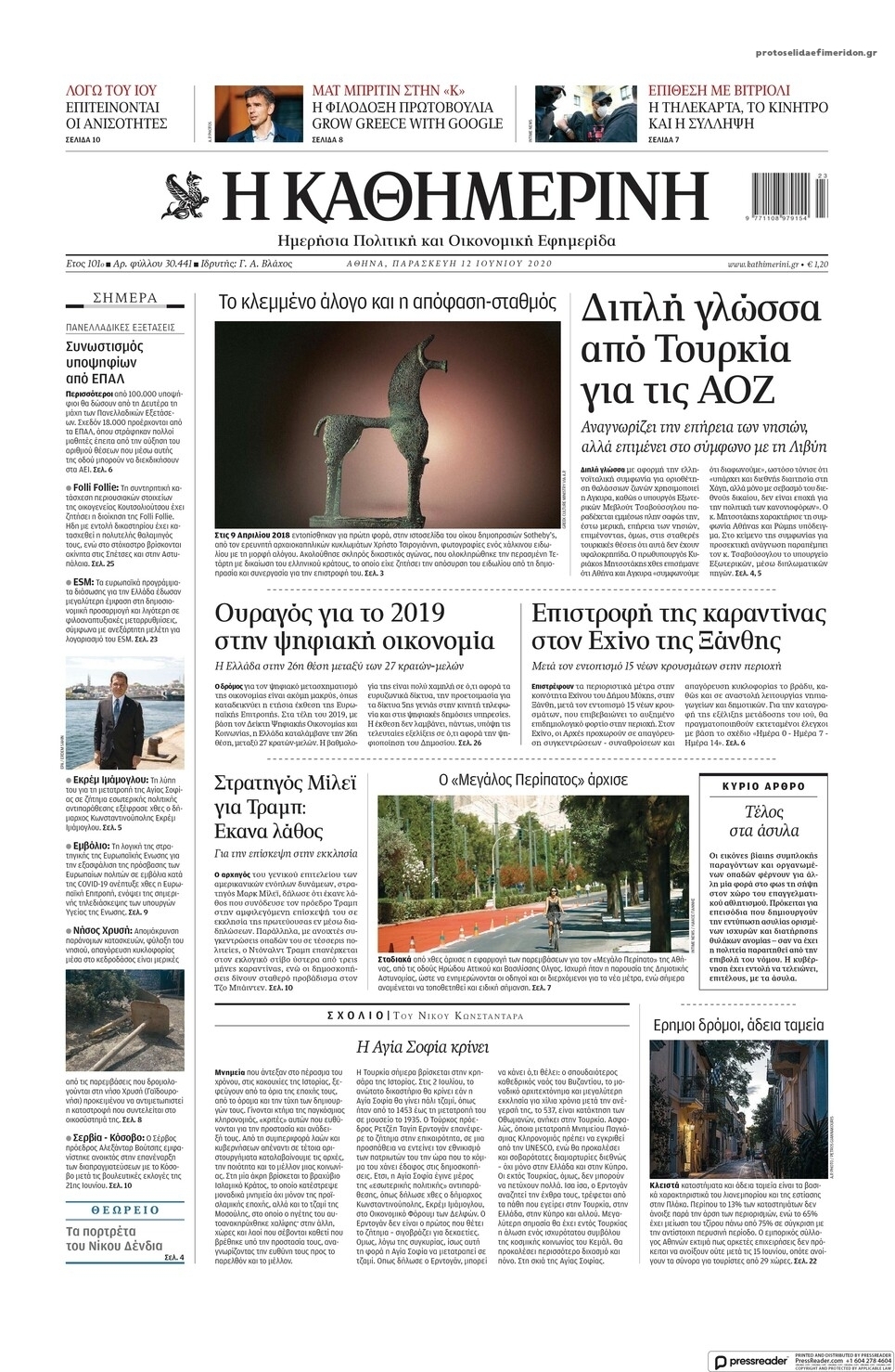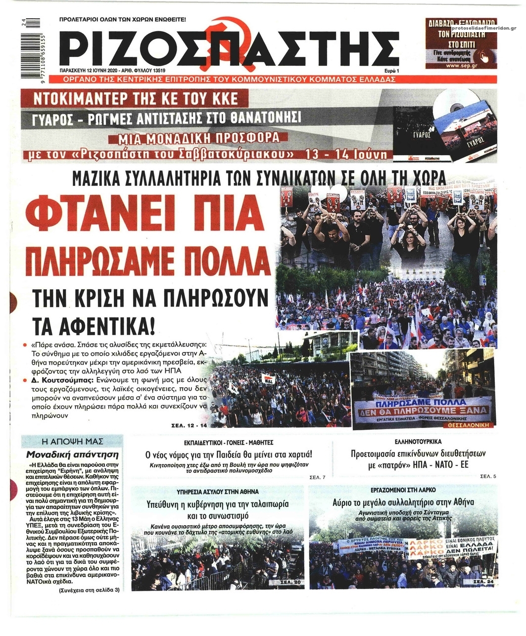 Διαβάστε όλα τα πρωτοσέλιδα των πολιτικών εφημερίδων της Παρασκευής 12 Ιουνίου. Πλήρης ενημέρωση με μια γρήγορη ματιά!