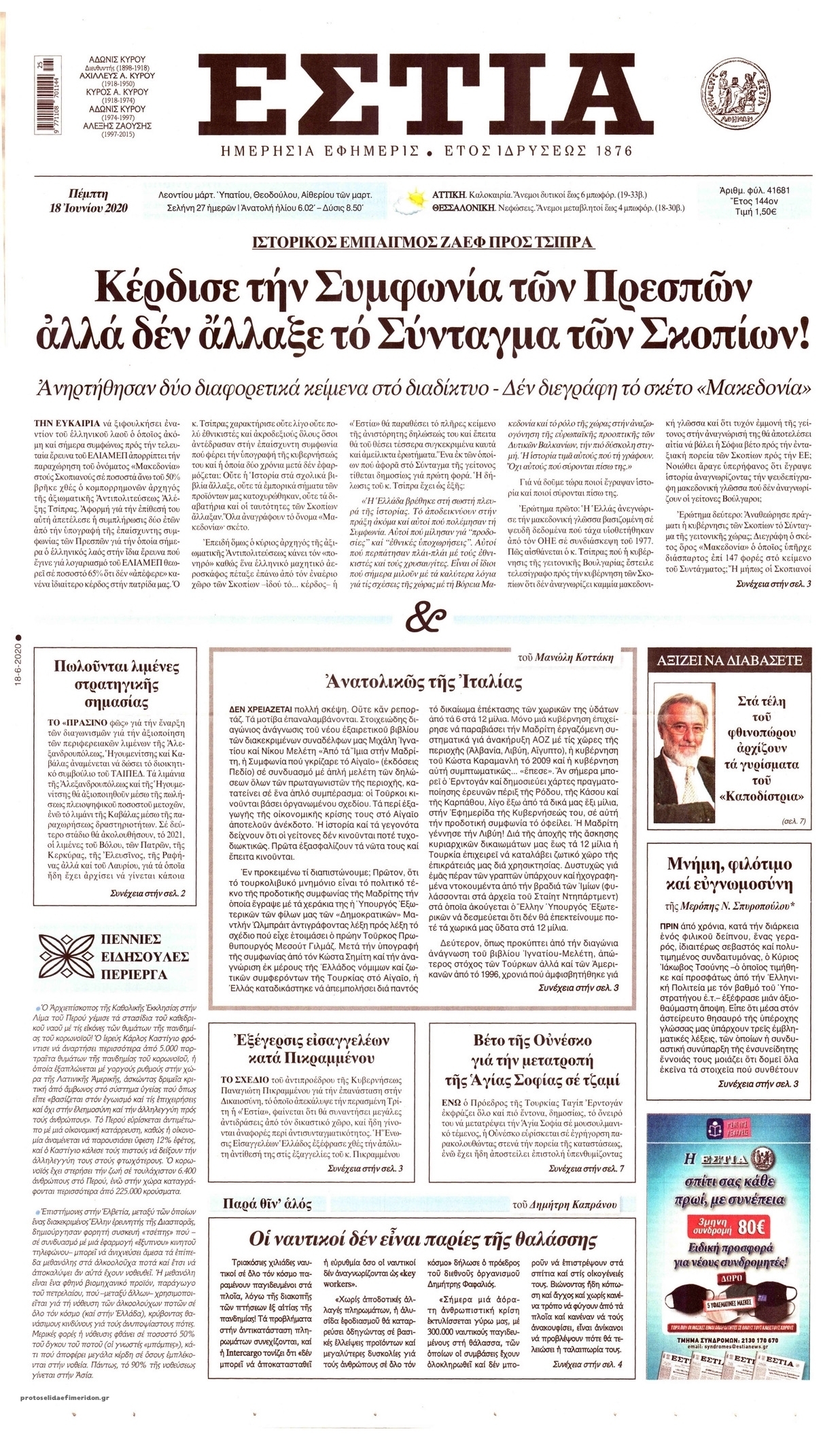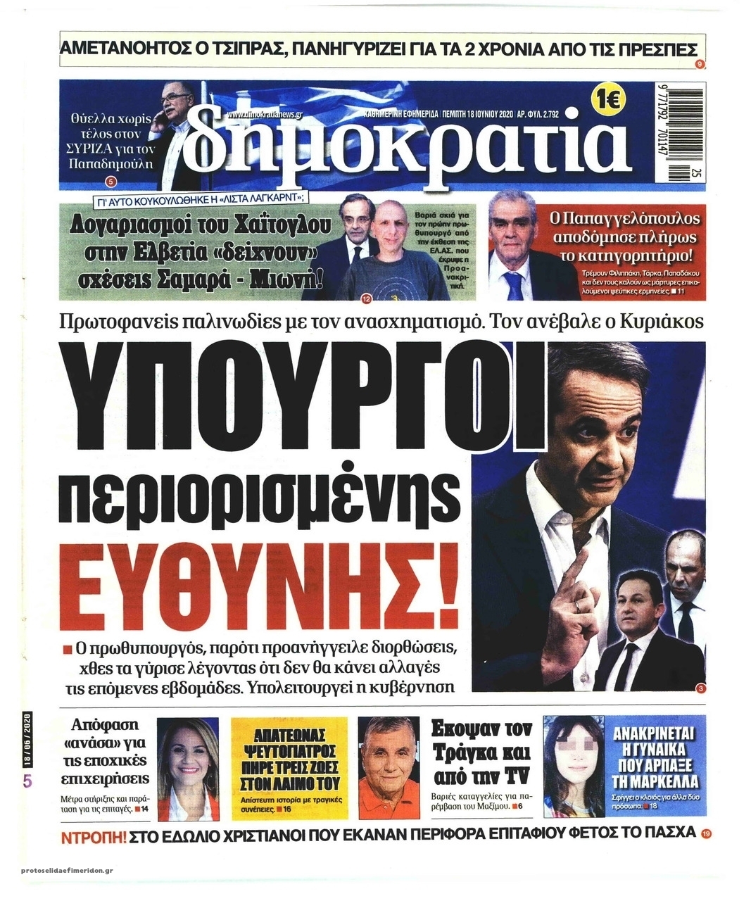 Διαβάστε όλα τα πρωτοσέλιδα των πολιτικών εφημερίδων της Πέμπτης 18 Ιουνίου. Πλήρης ενημέρωση με μια γρήγορη ματιά!