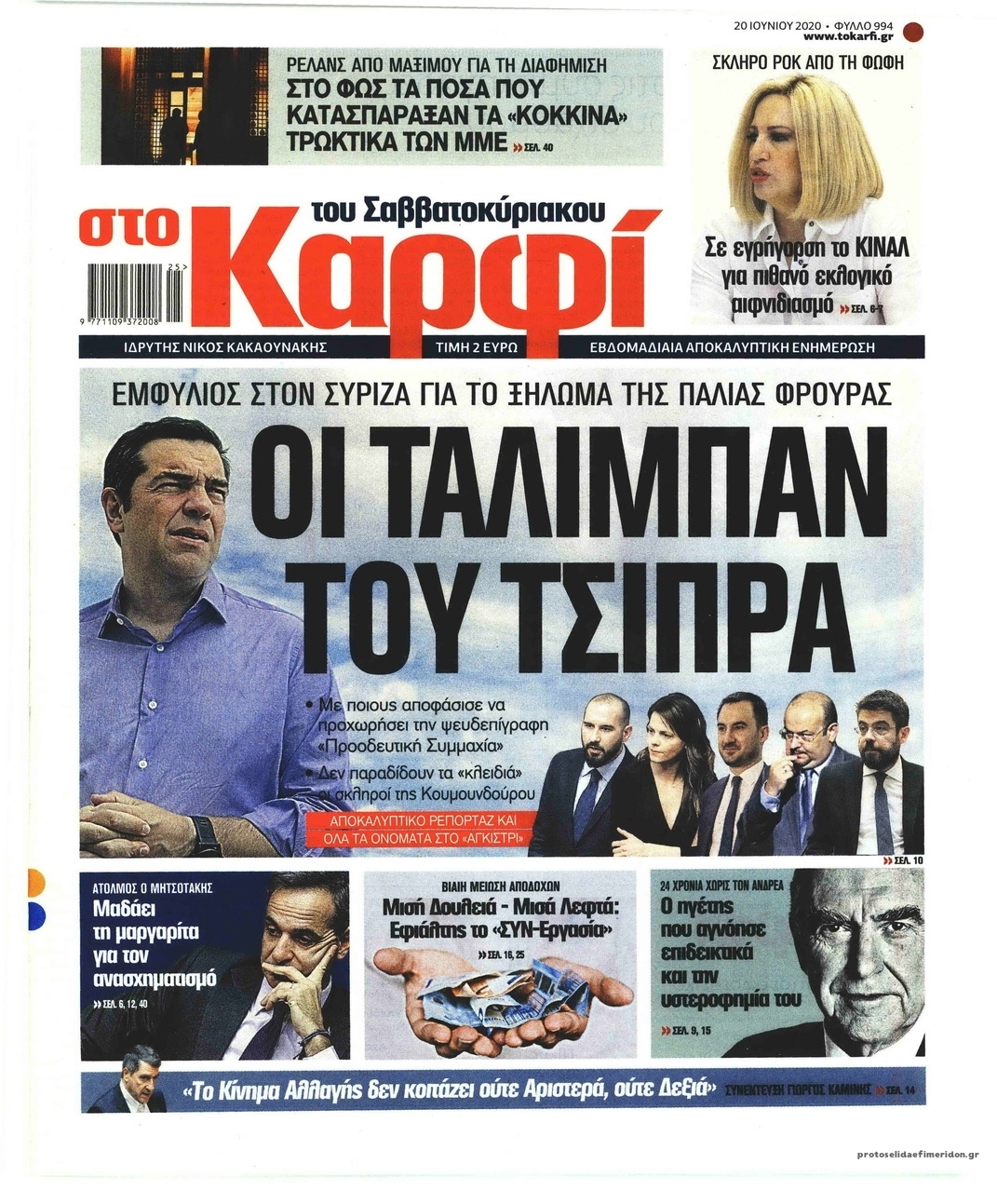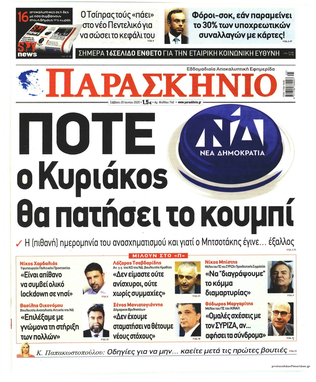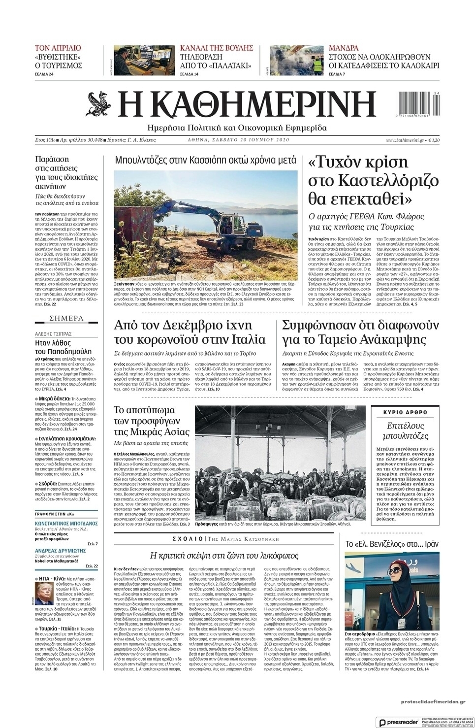 Διαβάστε όλα τα πρωτοσέλιδα των πολιτικών εφημερίδων του Σαββάτου 20 Ιουνίου. Πλήρης ενημέρωση με μια γρήγορη ματιά!