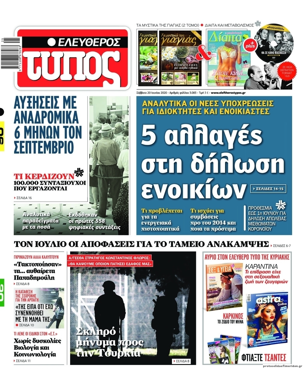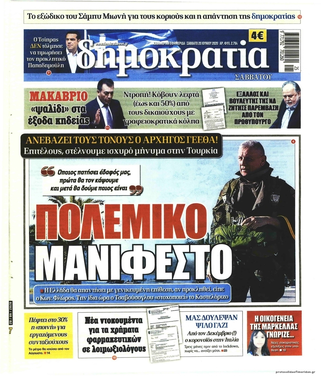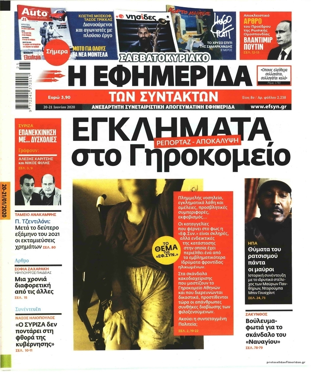 Διαβάστε όλα τα πρωτοσέλιδα των πολιτικών εφημερίδων του Σαββάτου 20 Ιουνίου. Πλήρης ενημέρωση με μια γρήγορη ματιά!