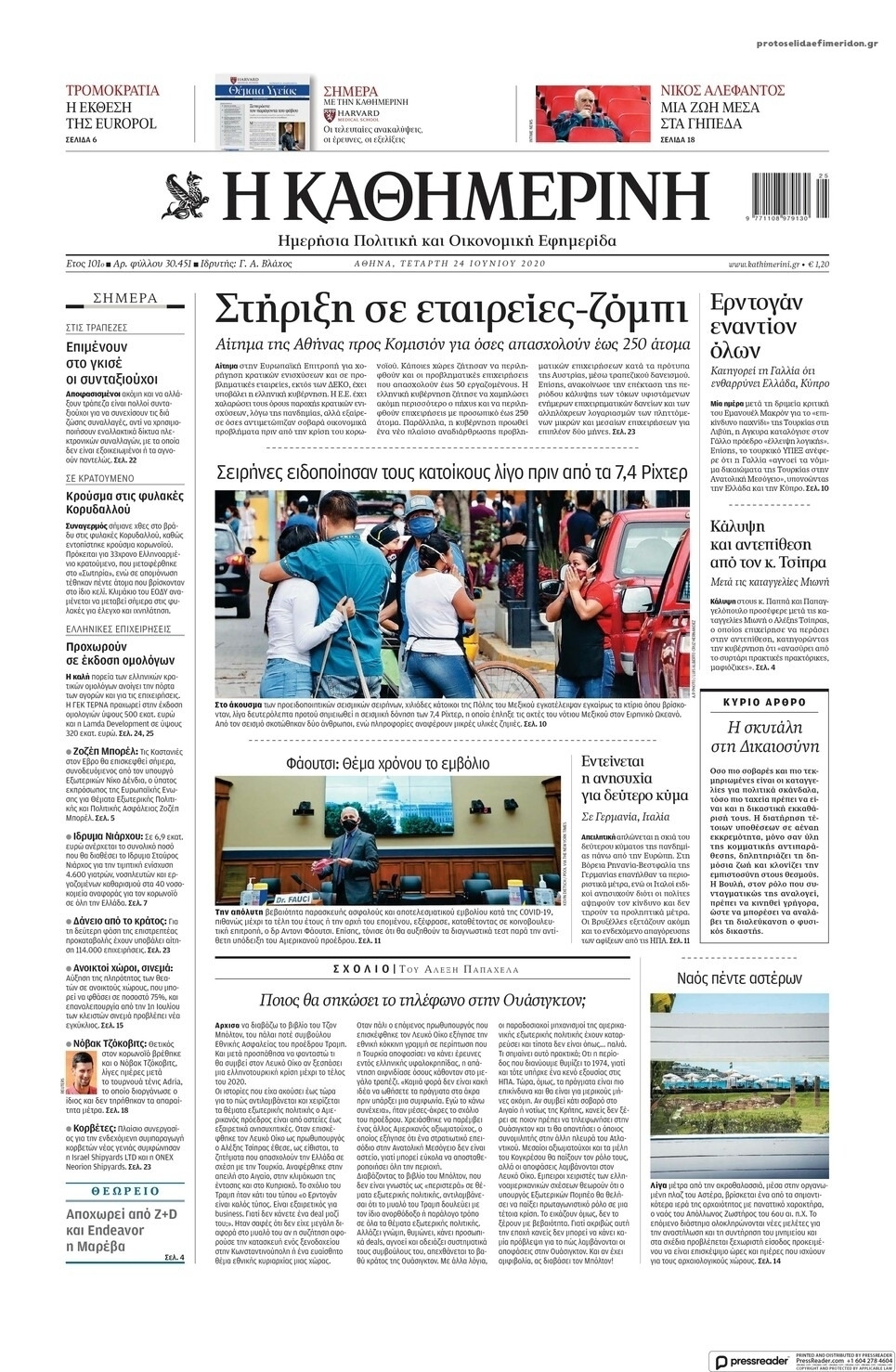 Διαβάστε όλα τα πρωτοσέλιδα των πολιτικών εφημερίδων της Τετάρτης 24 Ιουνίου. Πλήρης ενημέρωση με μια γρήγορη ματιά!