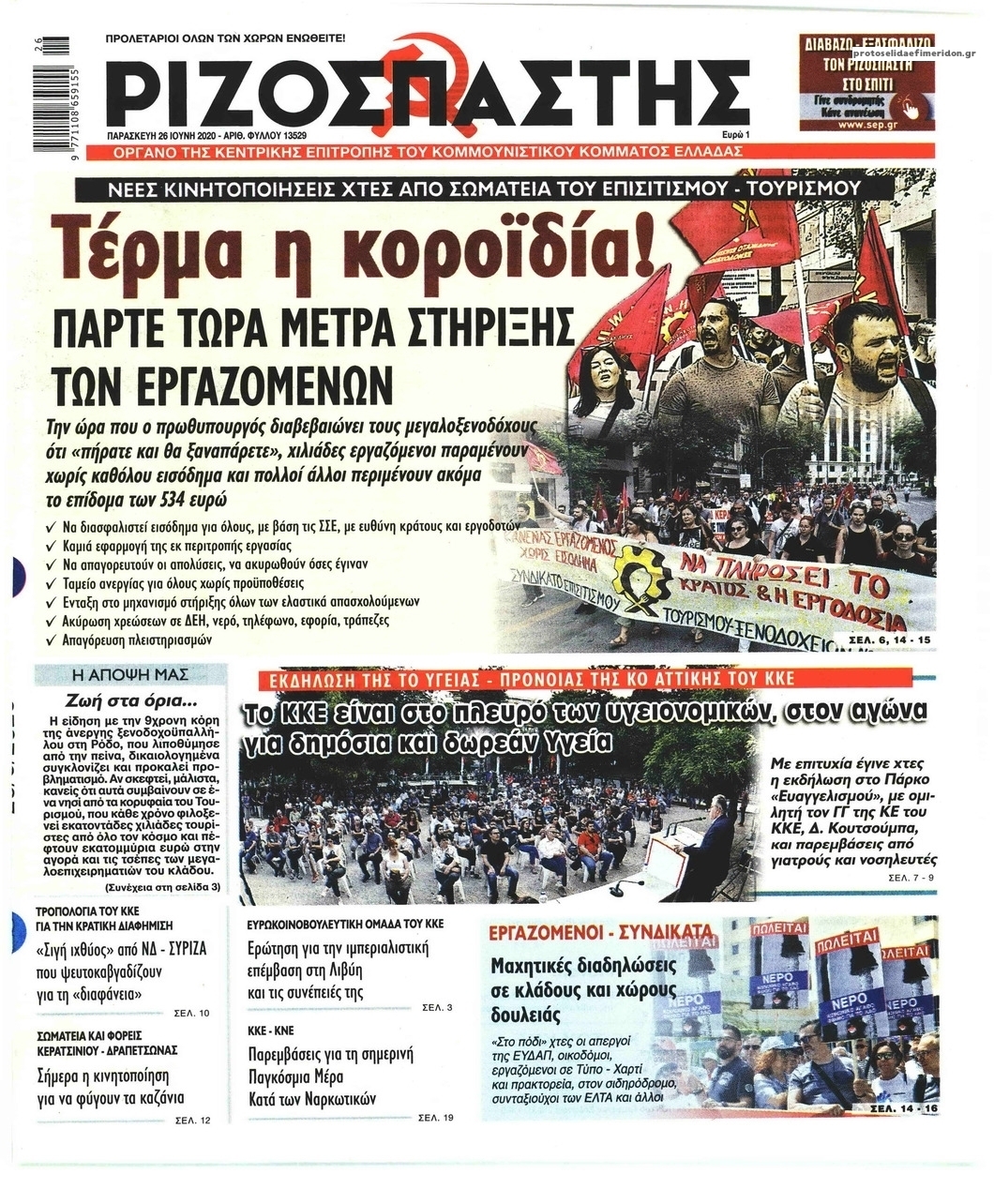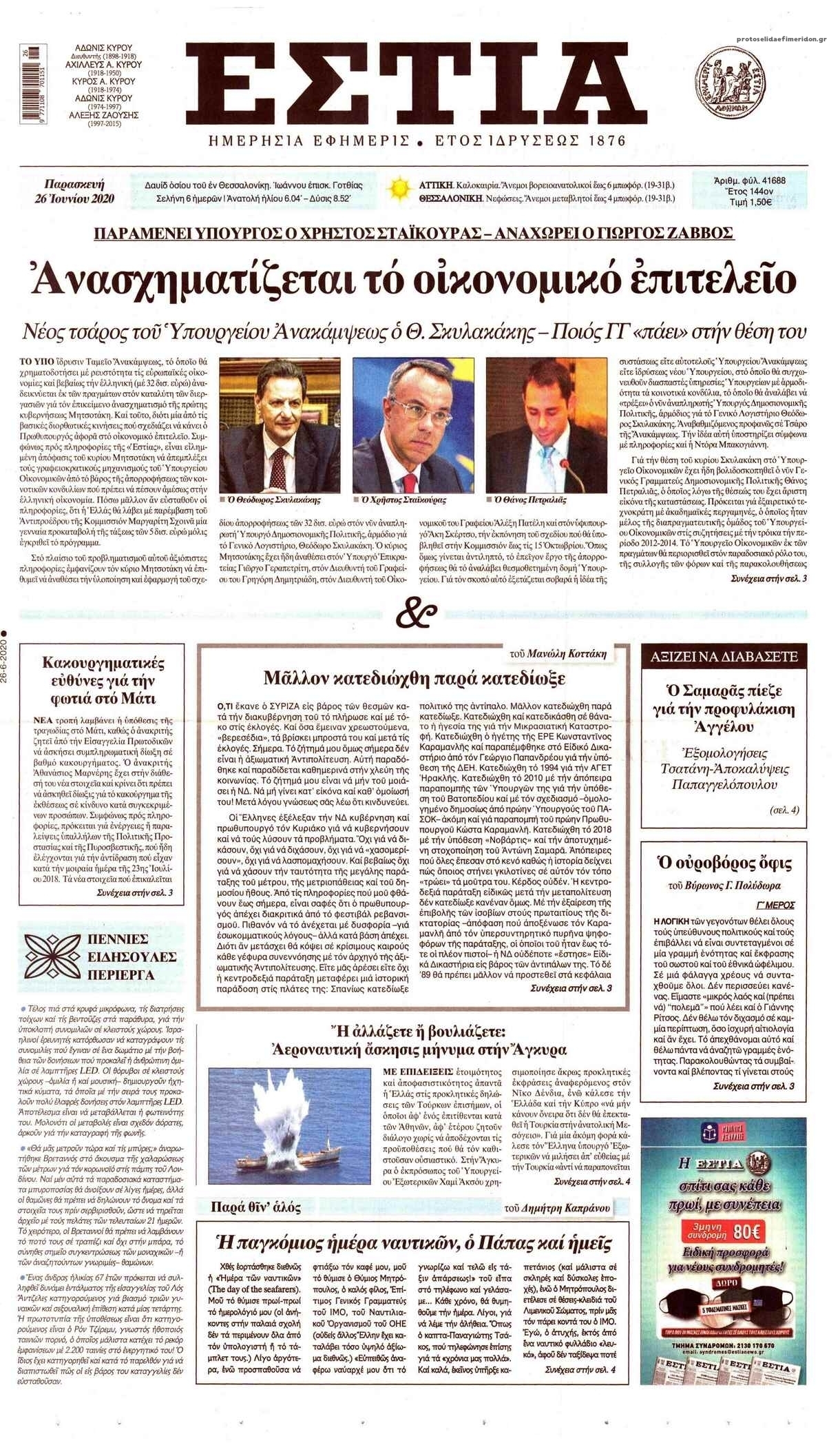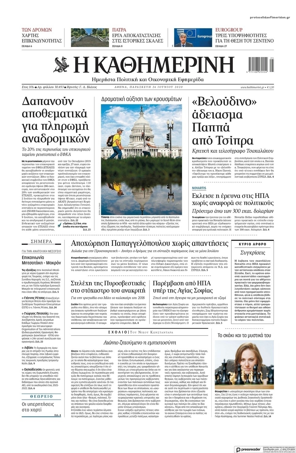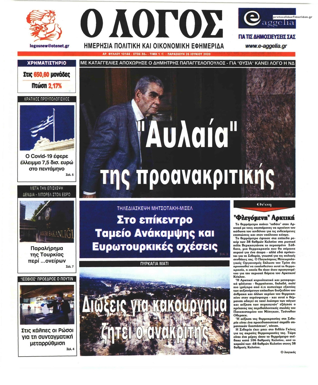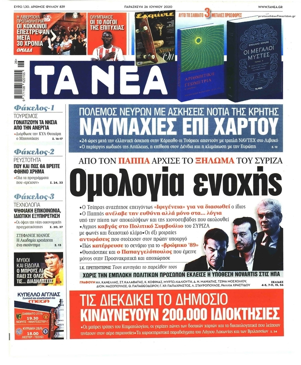 NewsMEDIASLIDER Διαβάστε όλα τα πρωτοσέλιδα των πολιτικών εφημερίδων της Παρασκευής 26 Ιουνίου 2020 FacebookTwitterEmailViberWhatsAppCopy URLΤυπώνω Διαβάστε όλα τα πρωτοσέλιδα των πολιτικών εφημερίδων της Παρασκευής 26 Ιουνίου. Πλήρης ενημέρωση με μια γρήγορη ματιά!