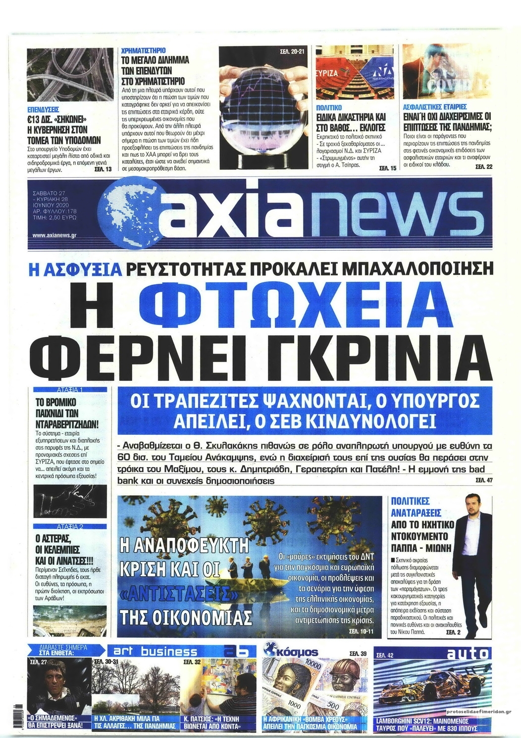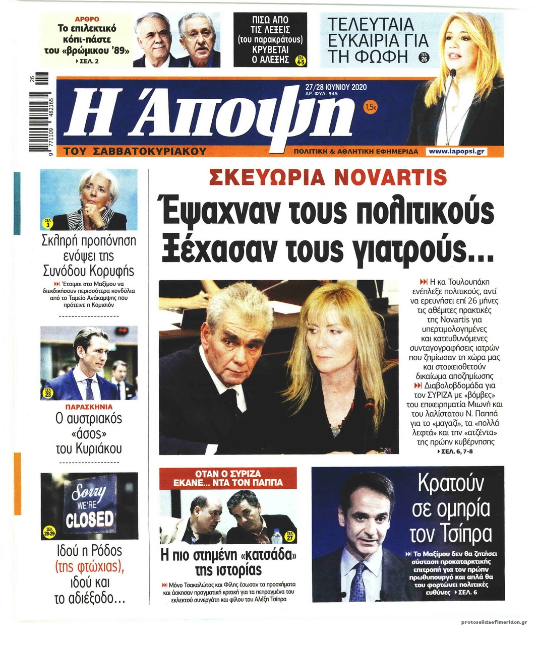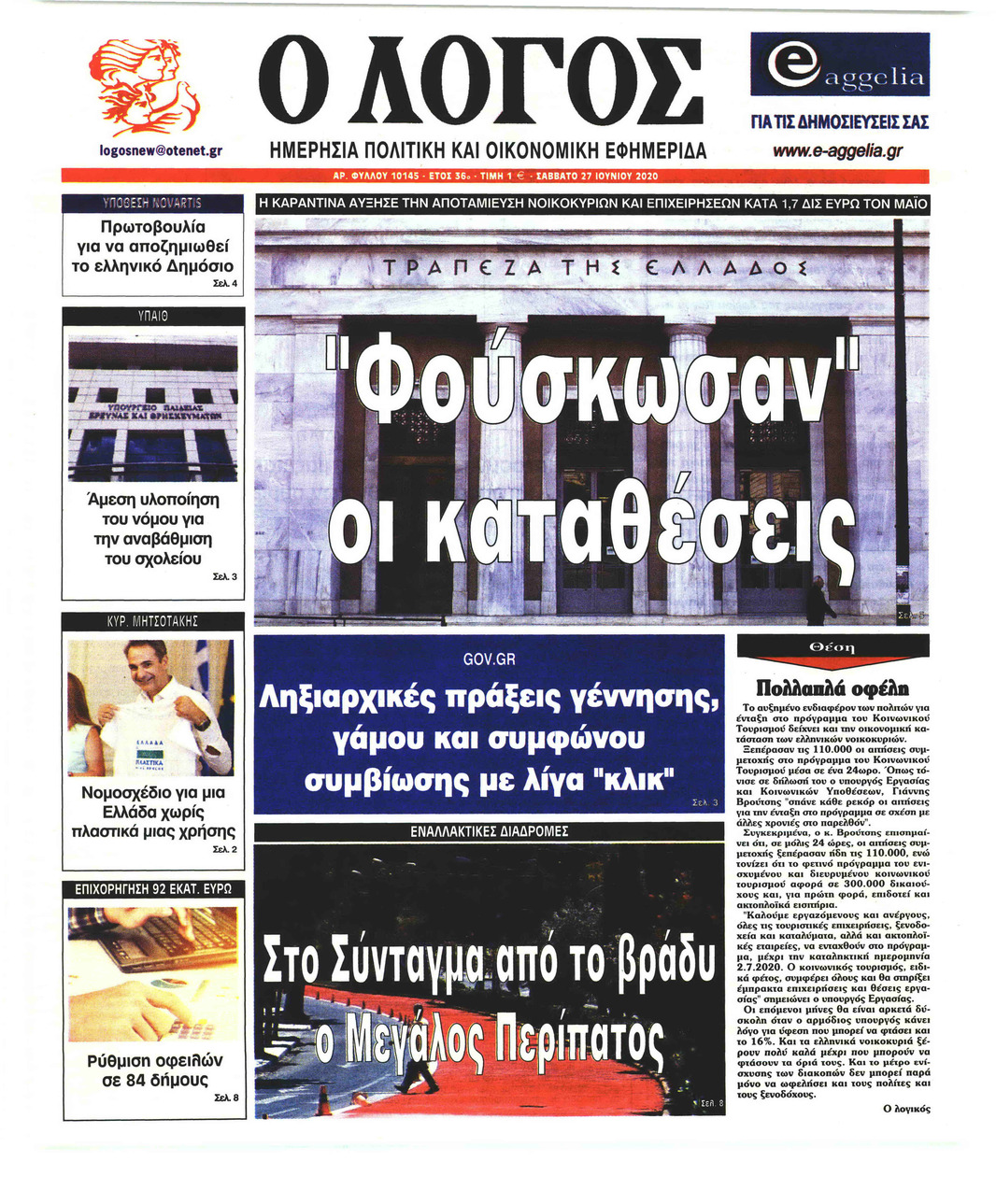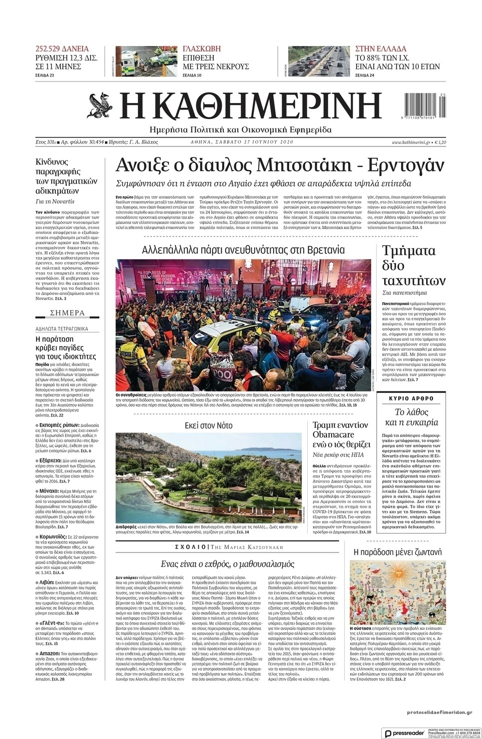 Διαβάστε όλα τα πρωτοσέλιδα των πολιτικών εφημερίδων του Σαββάτου 27 Ιουνίου. Πλήρης ενημέρωση με μια γρήγορη ματιά!