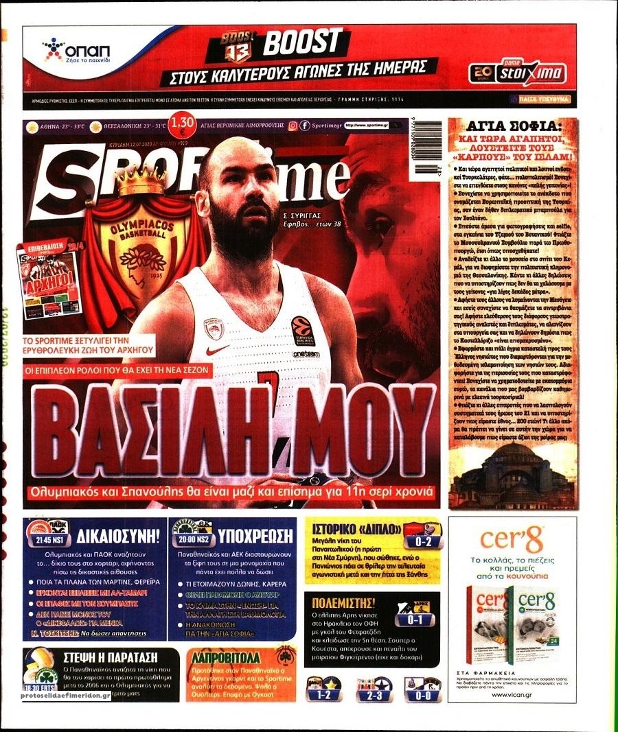 Διαβάστε όλα τα πρωτοσέλιδα των αθλητικών εφημερίδων της Κυριακής 12 Ιουλίου. Πλήρης ενημέρωση με μια γρήγορη ματιά!